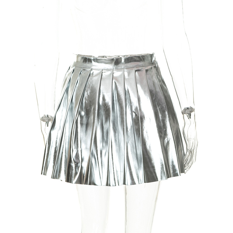 Heller Faltenrock aus Kunstleder