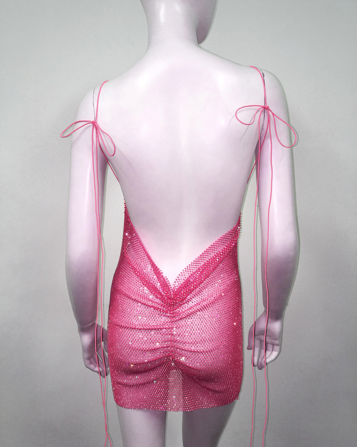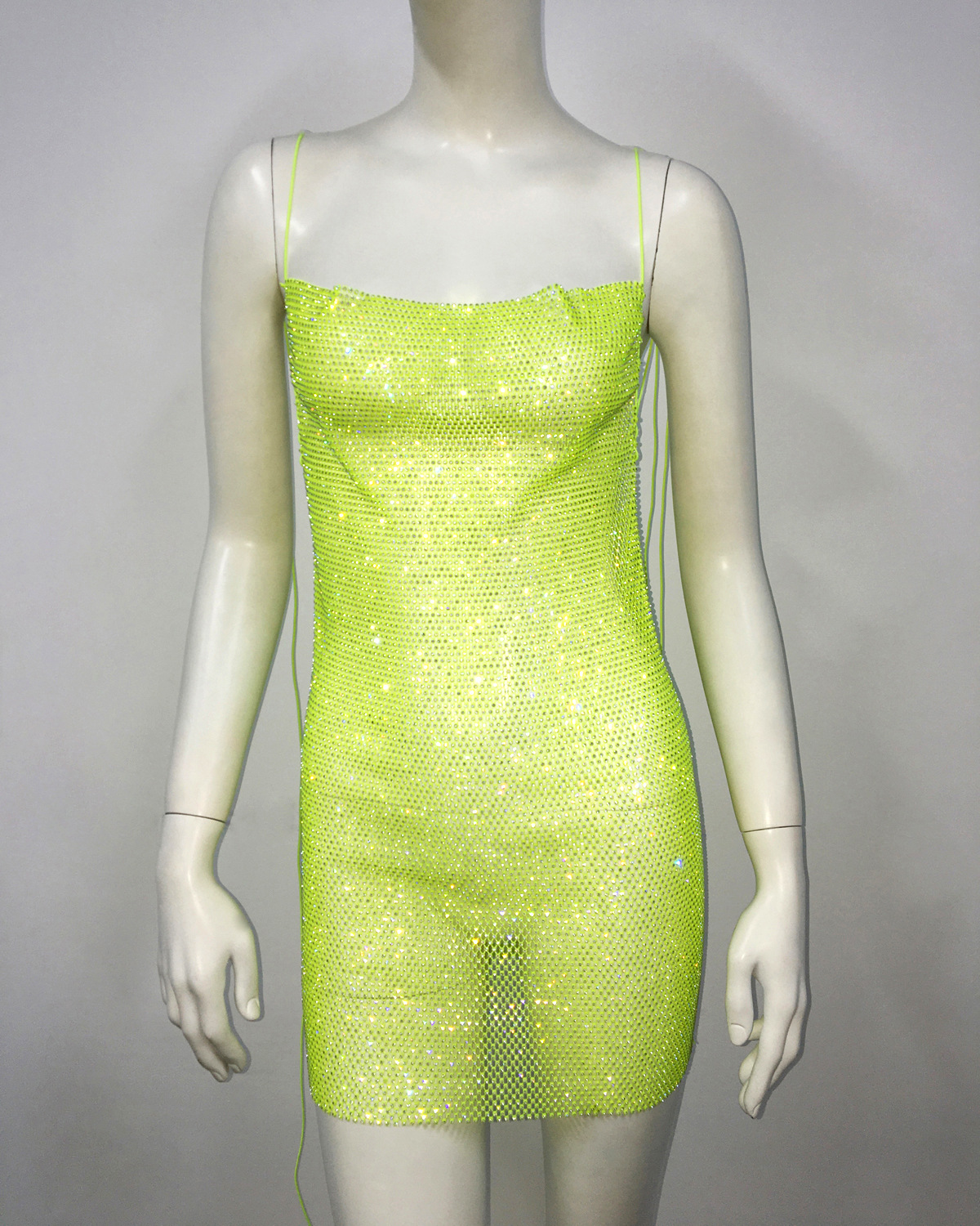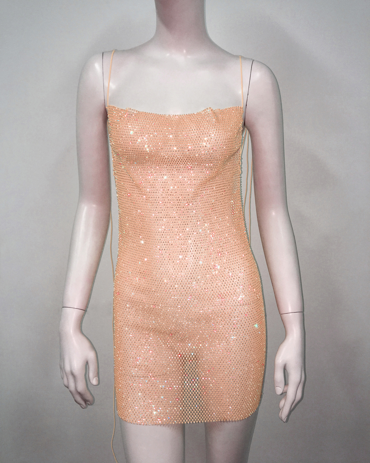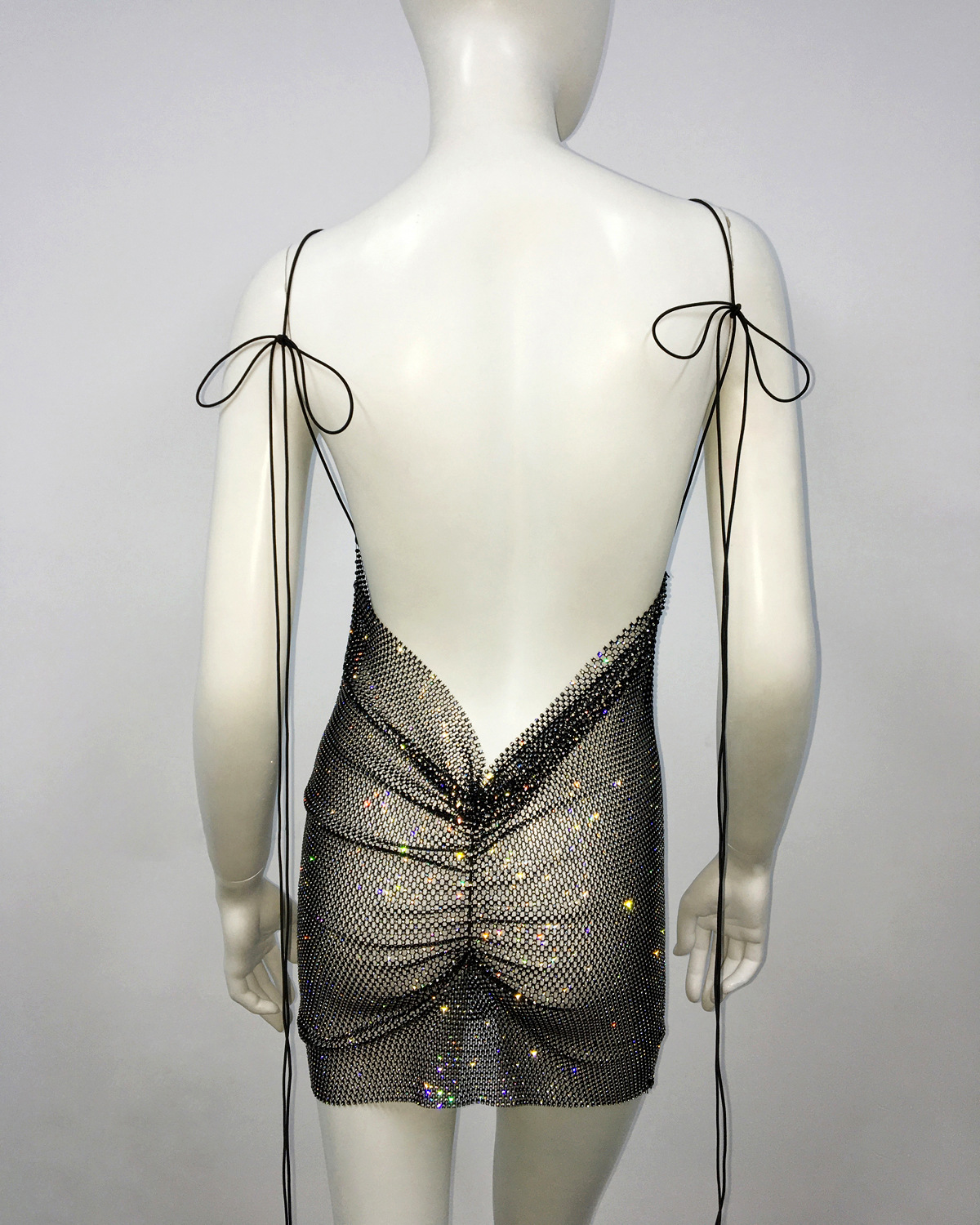 Cami-Kleid Beauty Back Cami-Kleid Fischnetz Strass Schnürung Enges Kleid
