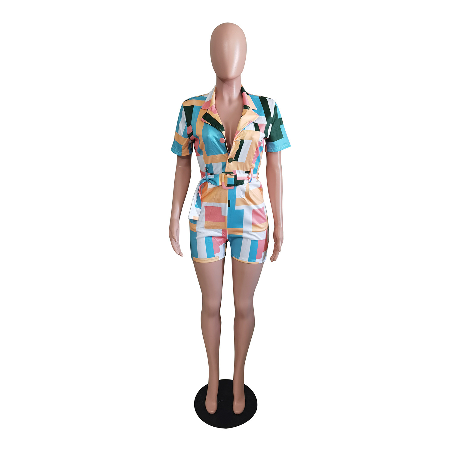 Lässiger Strampler mit kariertem Muster und Anzugkragen und Gürtel