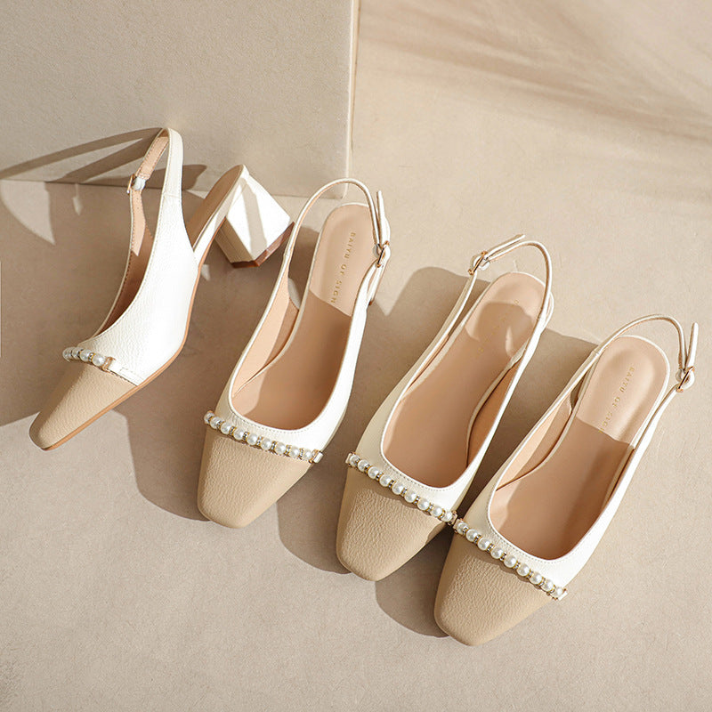 Modisches Element: Gürteldekoration. Flacher Mund. Dicker Absatz