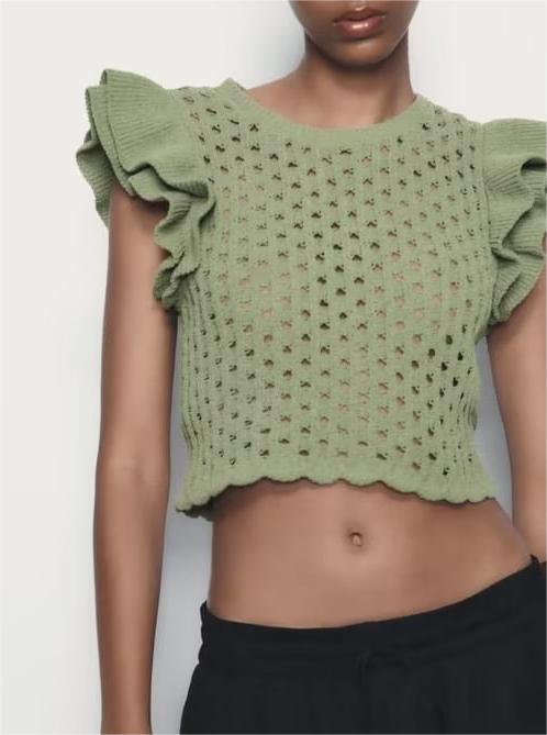 Dreifarbige, schmale Weste mit Rundhalsausschnitt und Holzohren