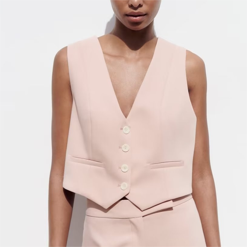 Weste mit tiefem V-Ausschnitt, verzierter Knopfreihe und Strickjacke