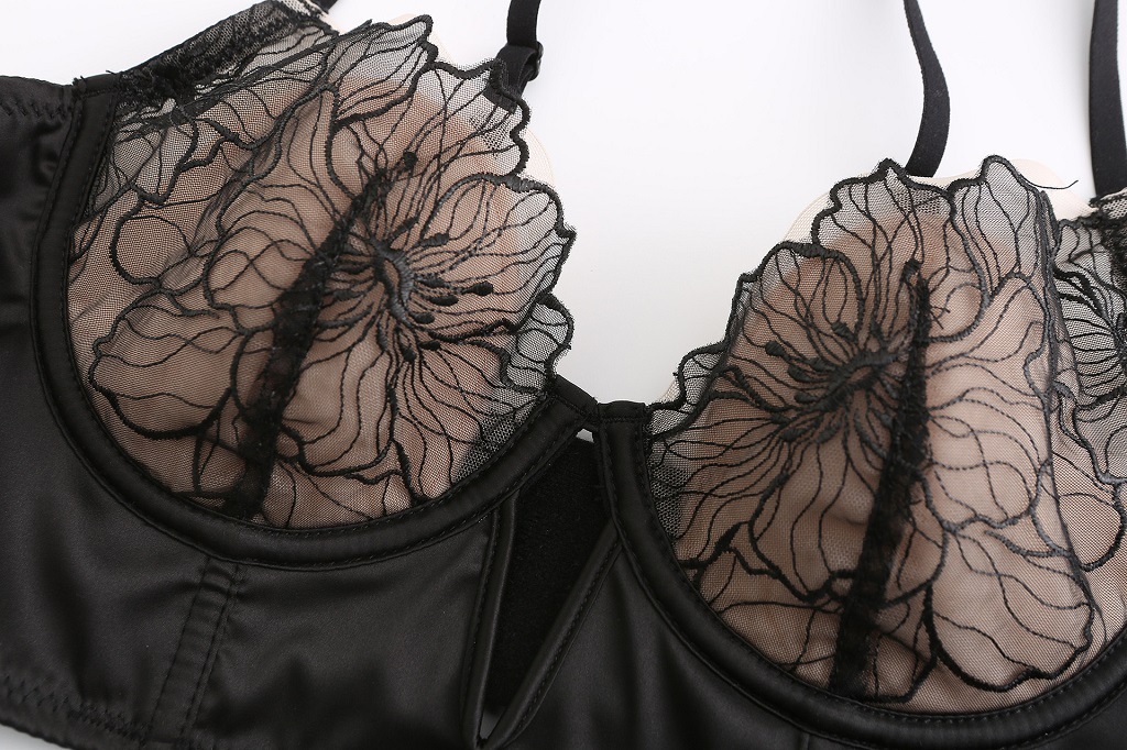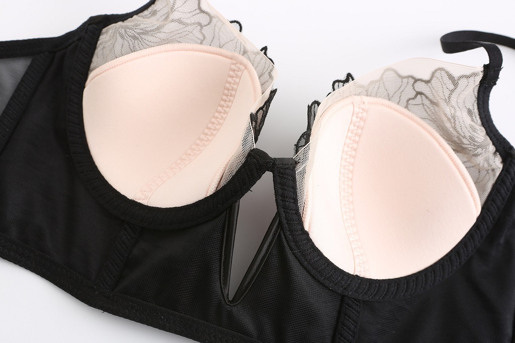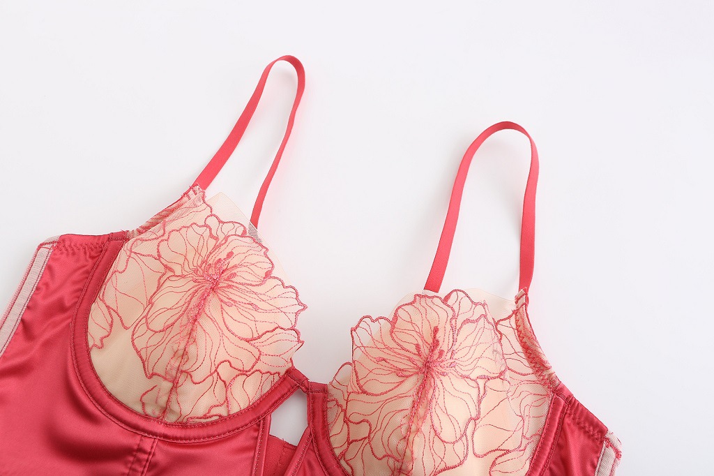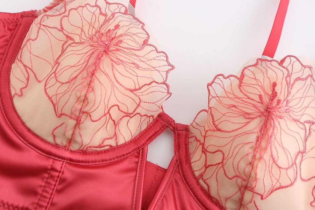 Tiefer V-Ausschnitt, ausgehöhlter Ausschnitt, bestickte Weste, Korsett mit Stäbchen, Shapewear, gerafftes langes BH-Set