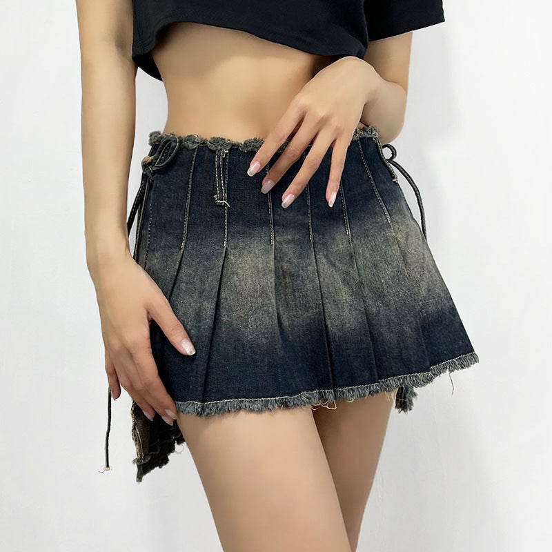 Jeansrock All-Match Distressed Ausgefranster Rand Hohe Taille mit Trägern Faltenrock