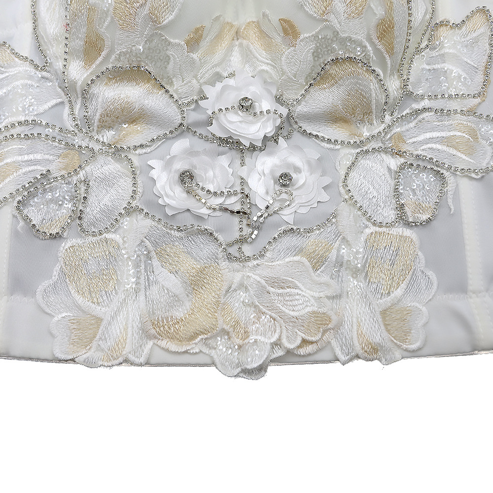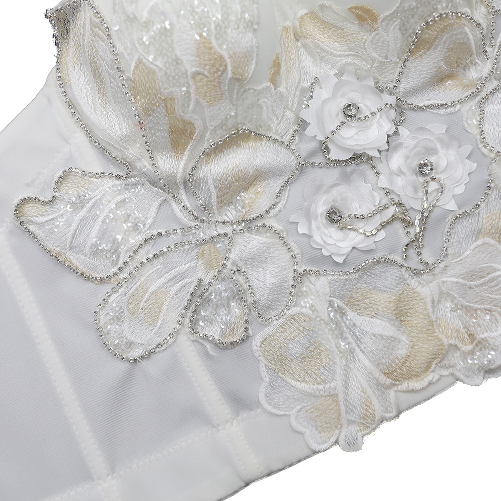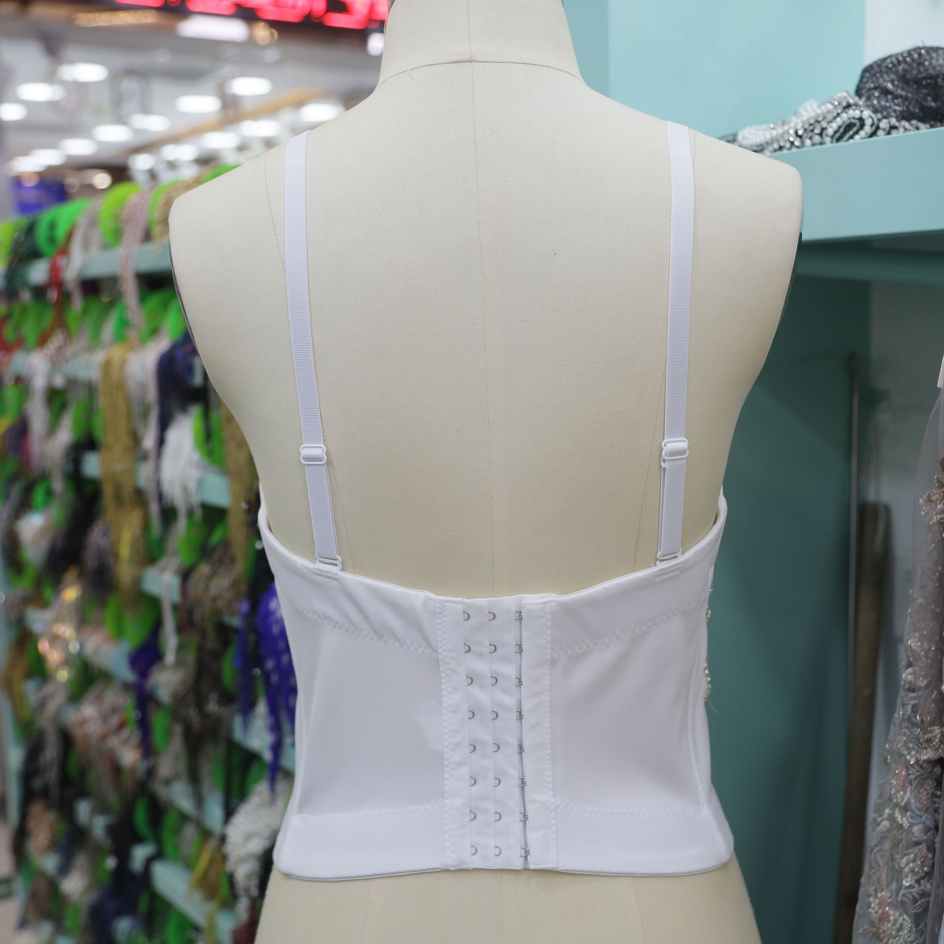 Französisches Korsett-Oberteil mit Bohrkette, umwickelte Brust, schlankmachendes, enges Korsett mit Perlen, dreidimensionales Blumenmuster, weiße Träger, Tube-Top-Weste