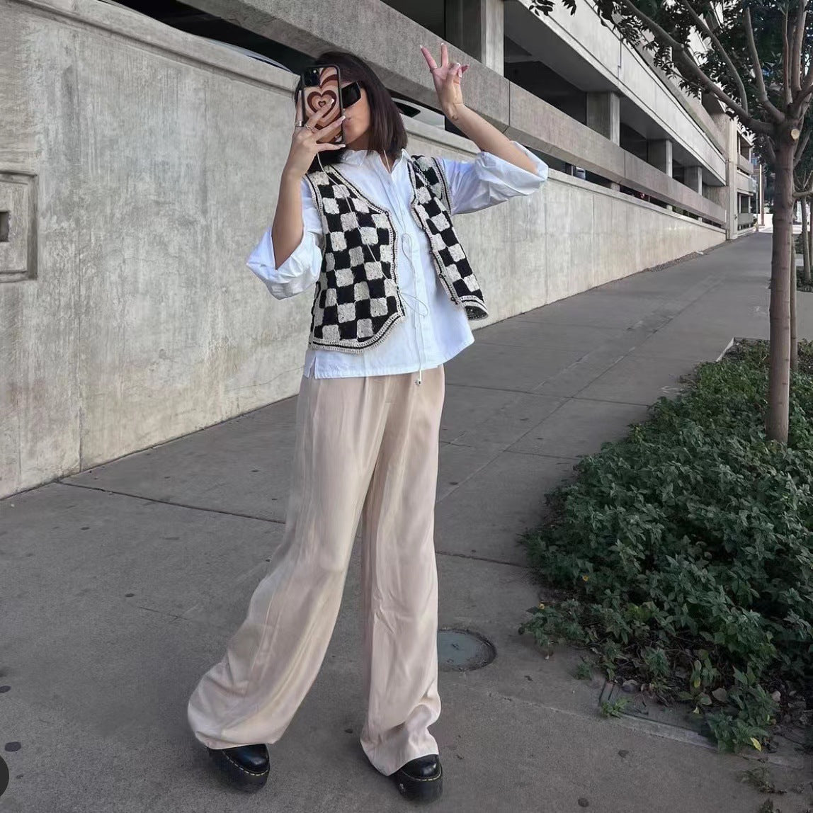 Frühe Strickweste mit V-Ausschnitt und Leinenoberfläche, Million Can Schachbrett-Karomantel mit kariertem ide-Kleinmantel