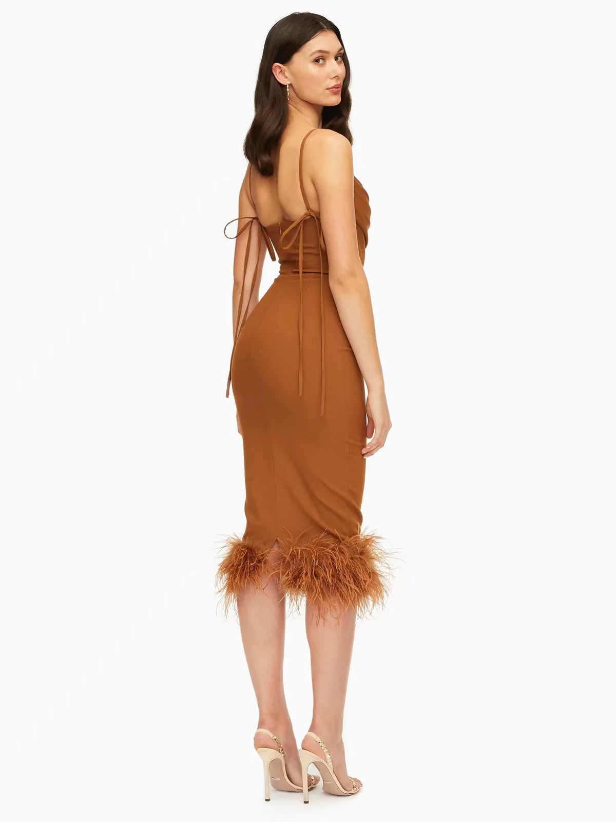 Elegantes Damenkleid mit Federn, schmales Etuikleid