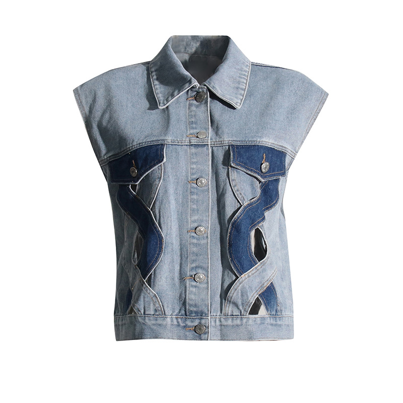 Herbst Lässige Bequeme Jeansweste Weste Stitching Twist Jeansweste
