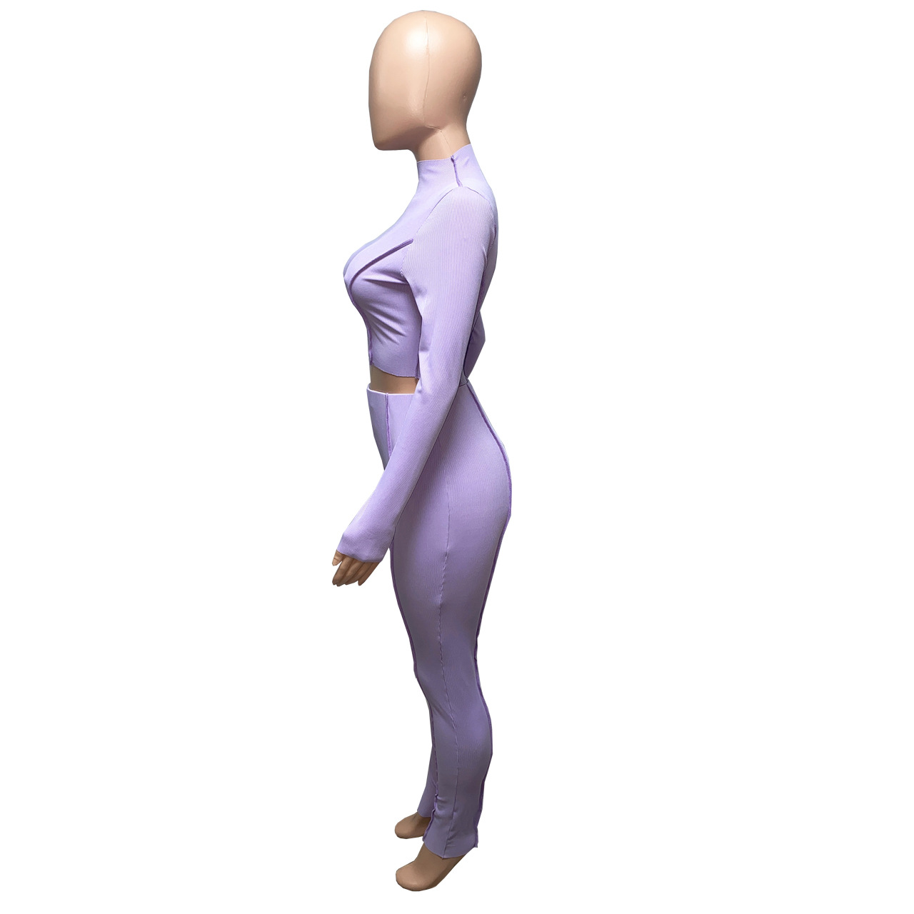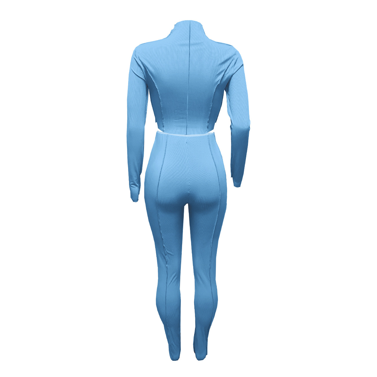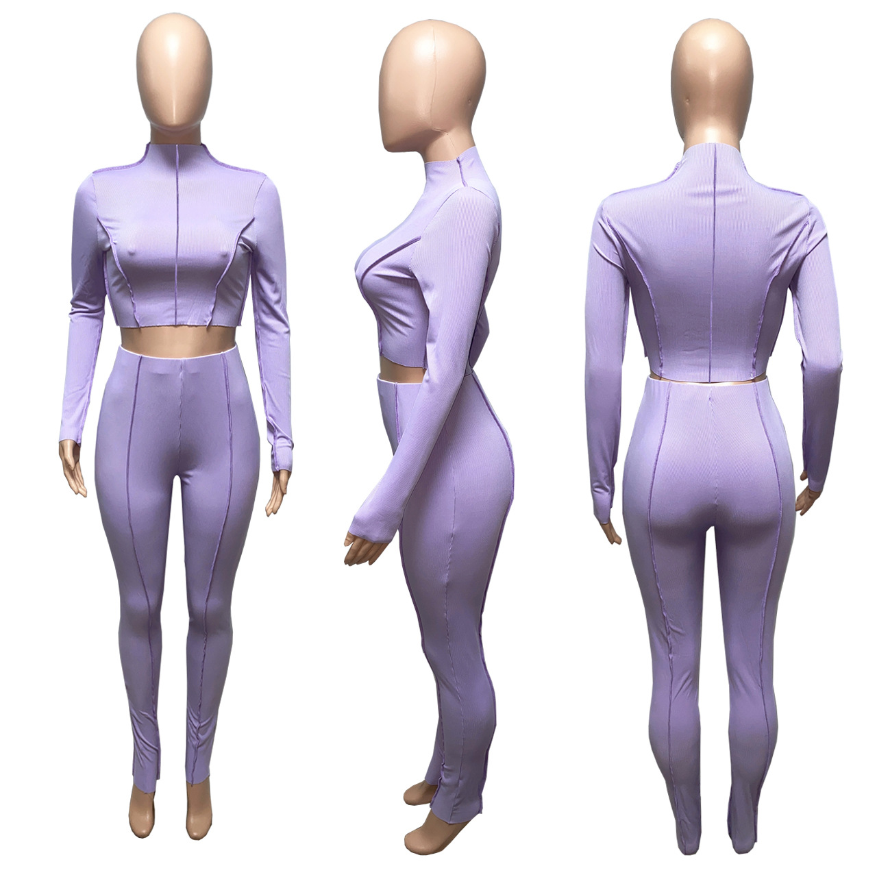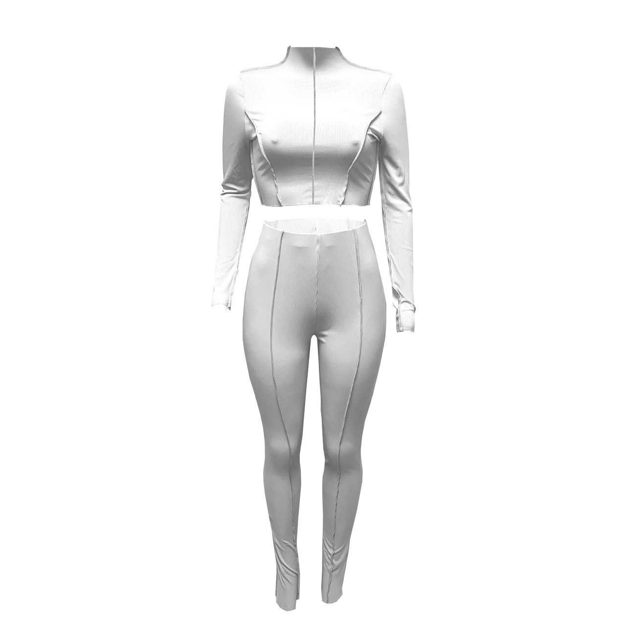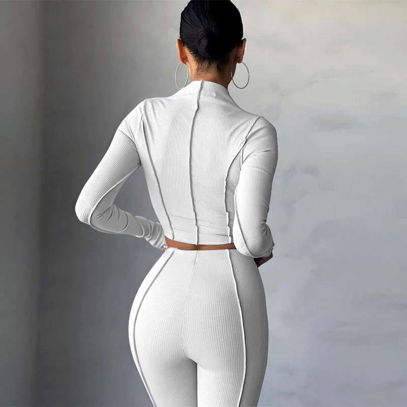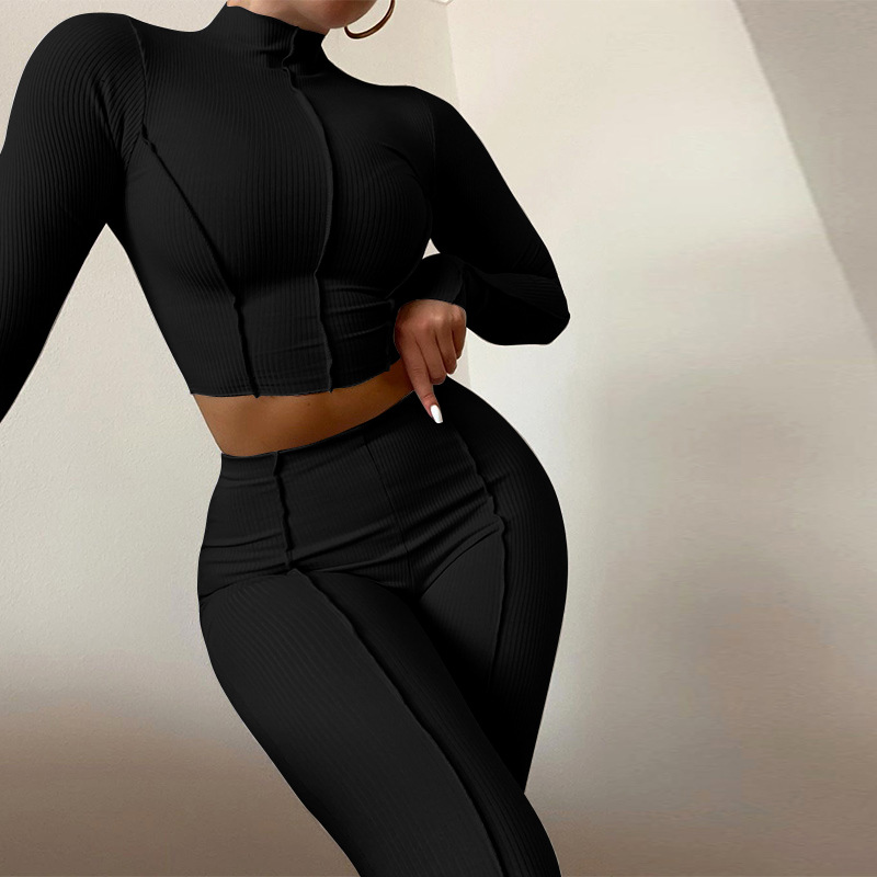 Herbst-Idee-Out-Wear Hochgeschlossener Faden Hohe Taille Slim Fit Zweiteiliger Anzug