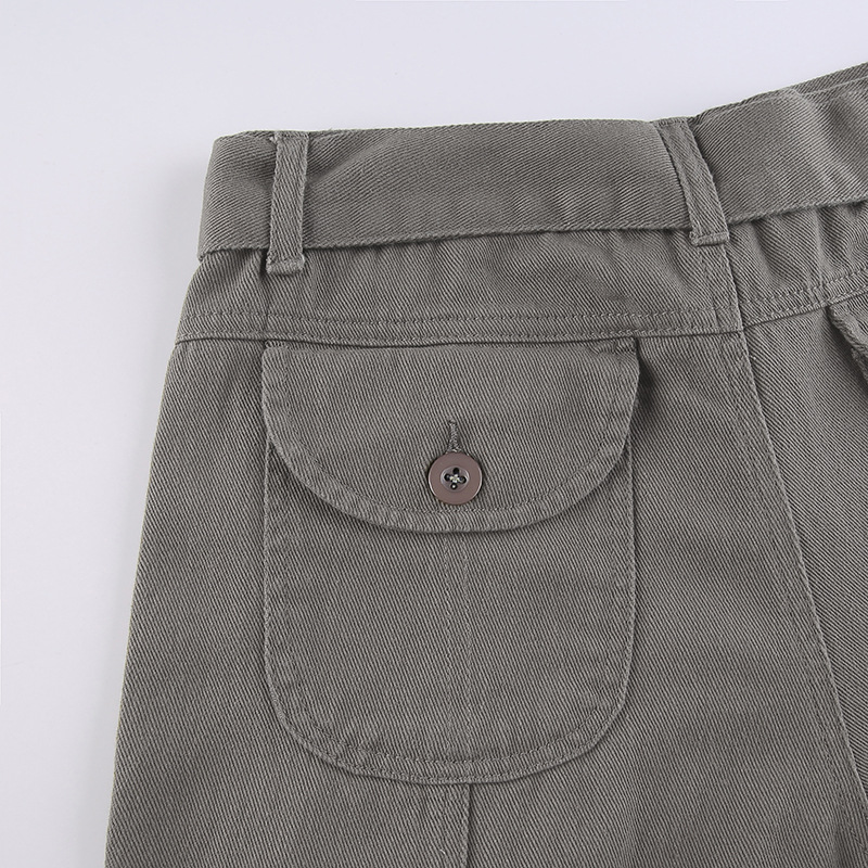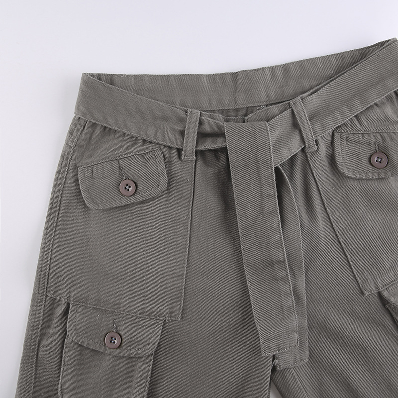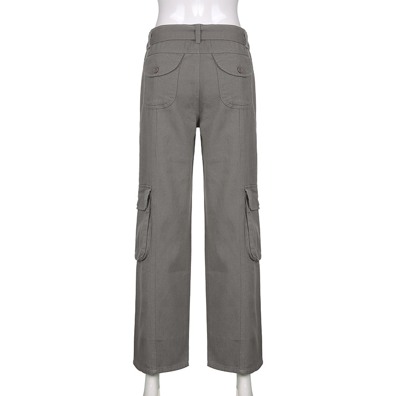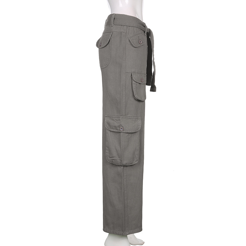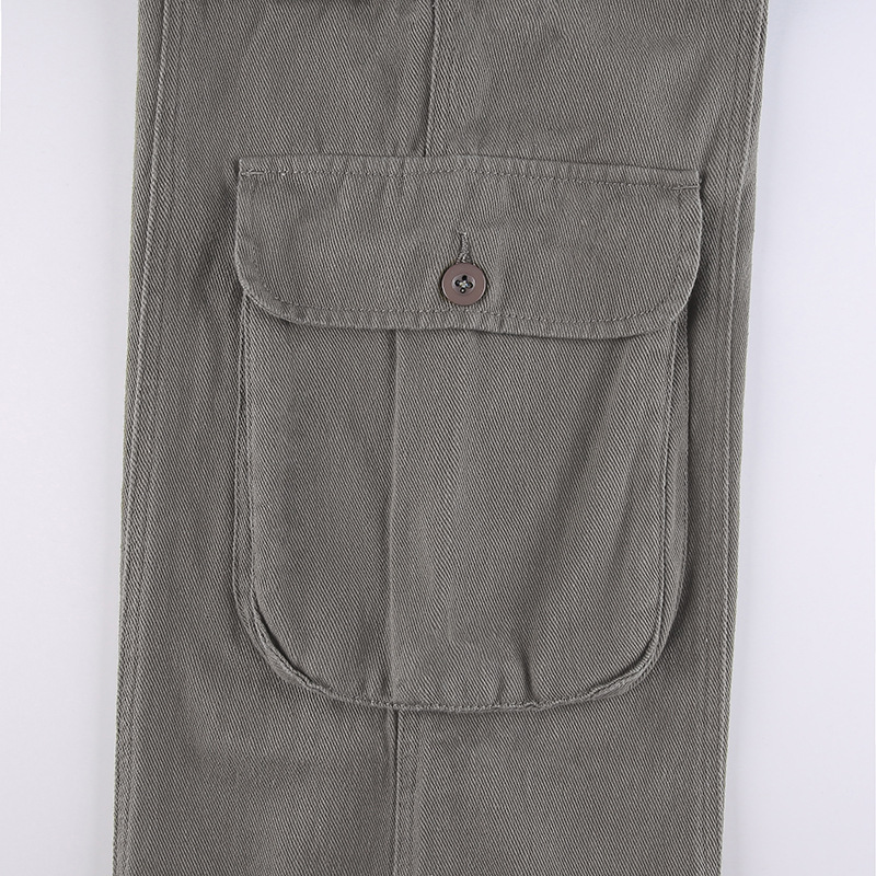 Herbstliche Cargo-Jeans mit niedriger Taille und Schnürung, einfarbig, Multi-Pocket-Schlankheits-Patchworkhose
