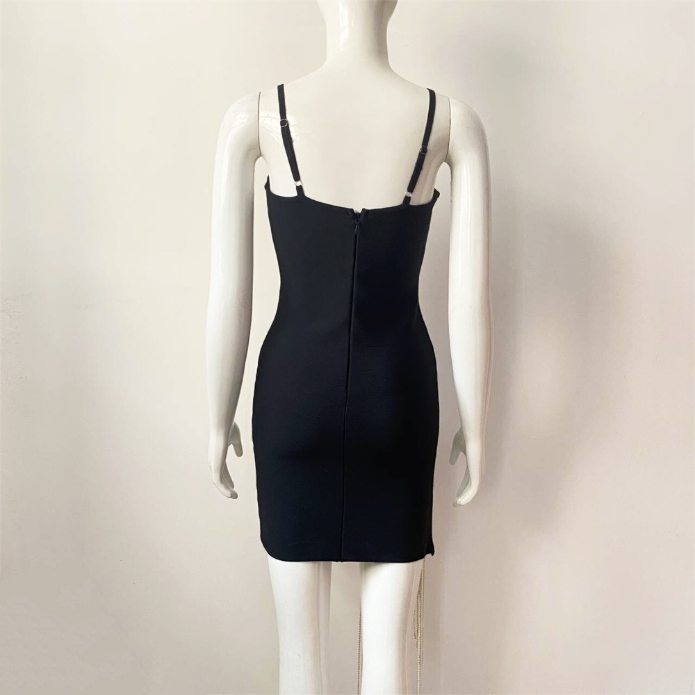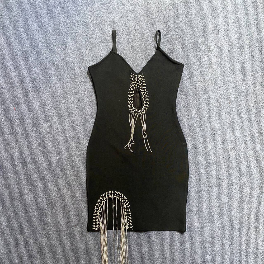 Herbst Strass Cut-out Camisole Bandage Kleid Elegante Perlen Quaste Party Kleid Kleid