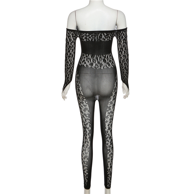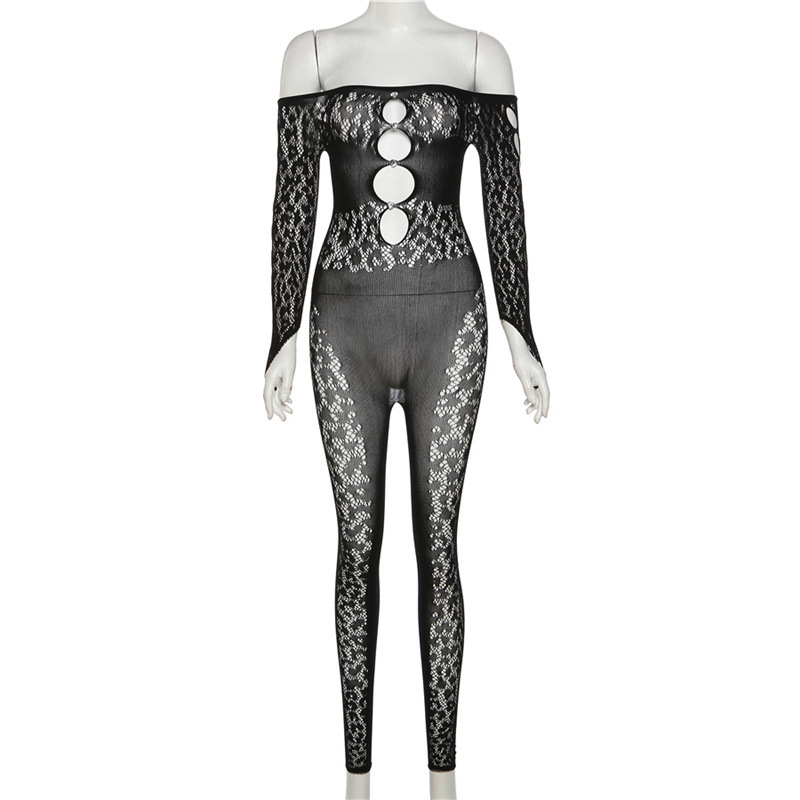 Herbst Wome Mesh Jacquard Aushöhlen Ausschnitt Hohe Taille Hose Keine Lange Engen Overall