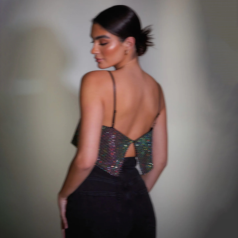 Modisches All Match Strass Rückenfreies Tube Top Sling Top