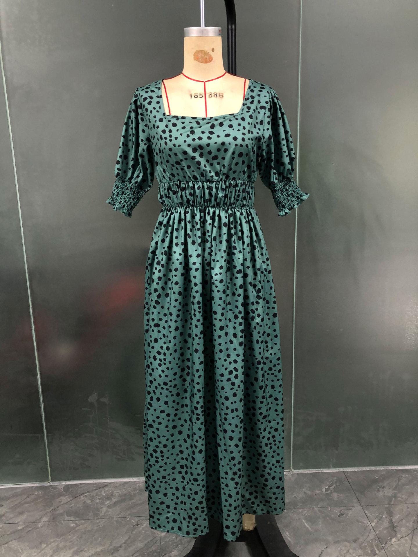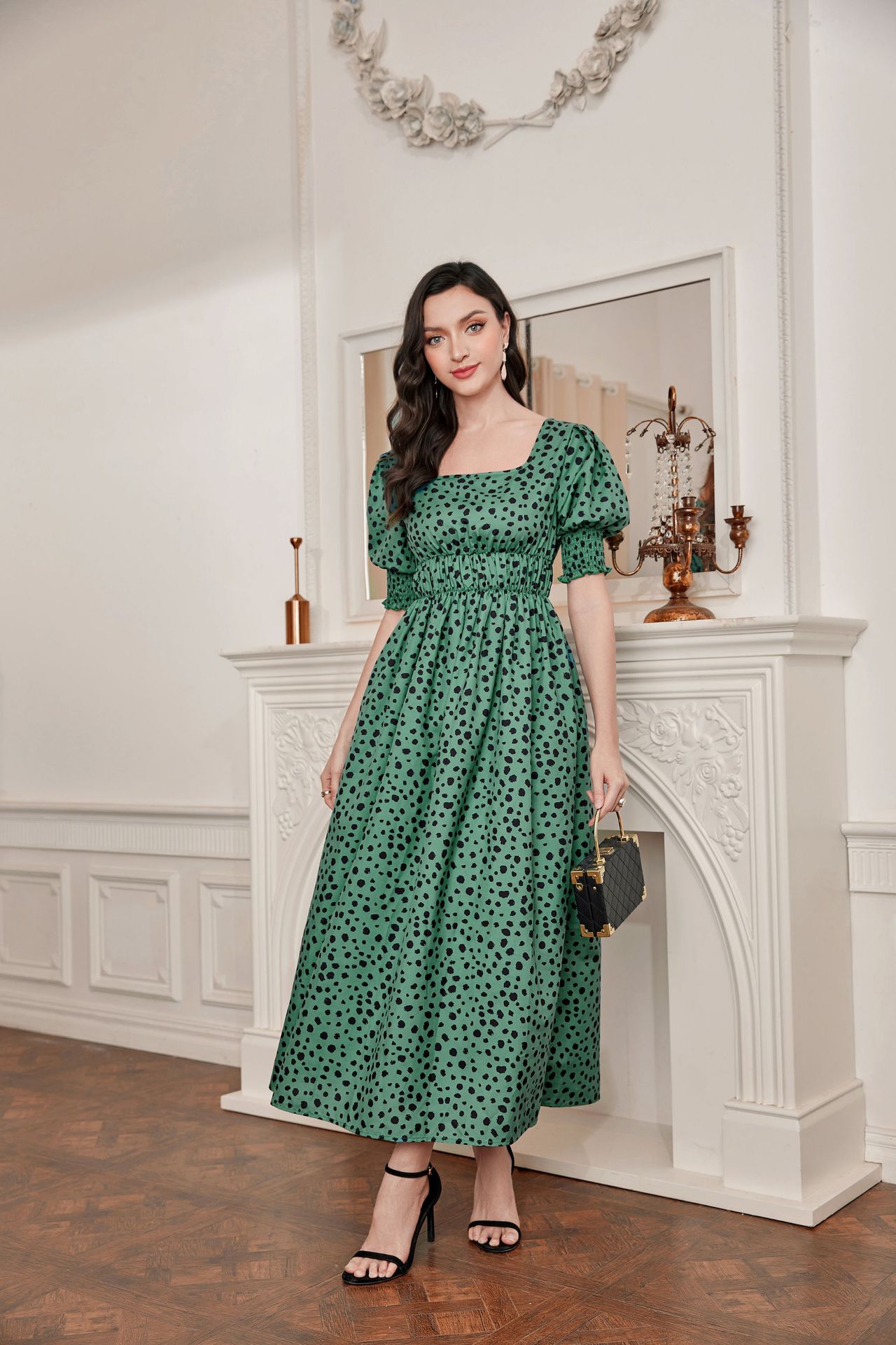 Modisches, elegantes Kleid mit quadratischem Kragen, Puffärmeln und hoher Taille