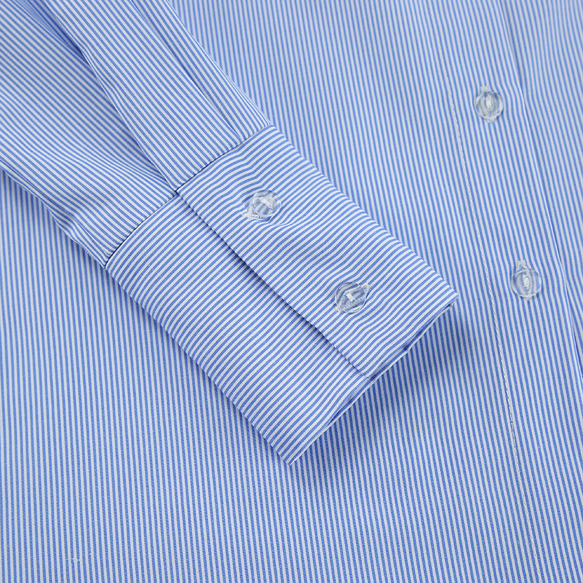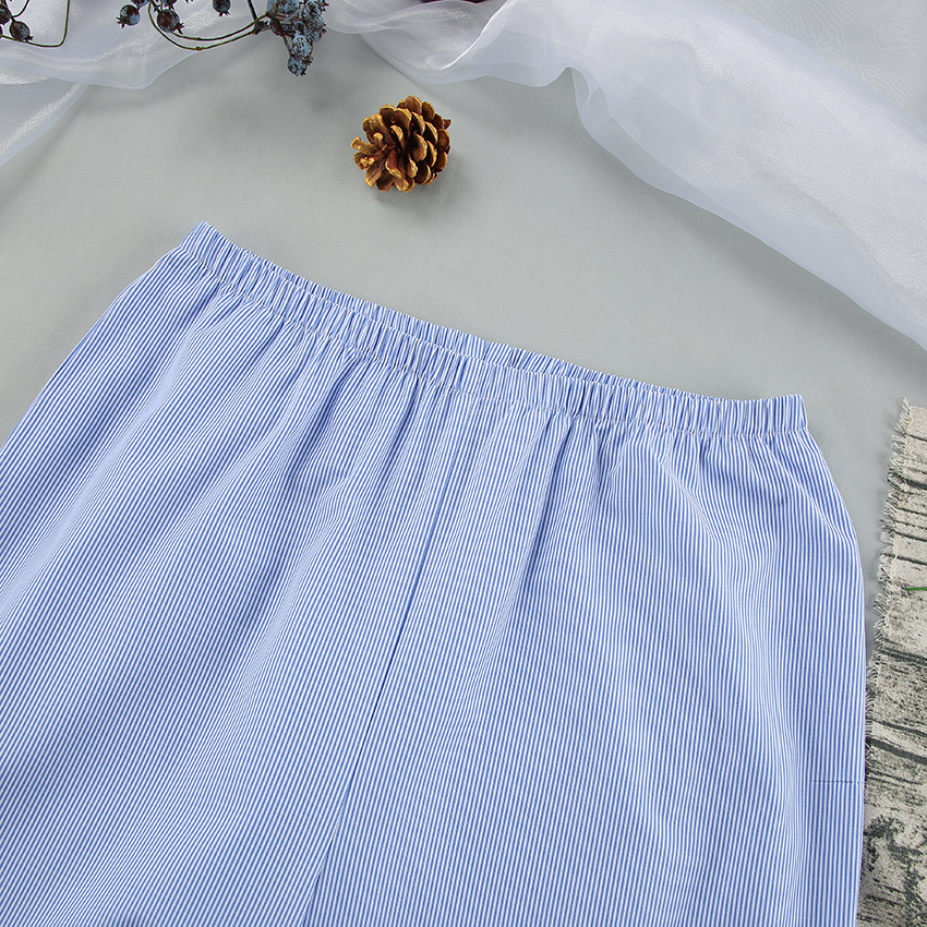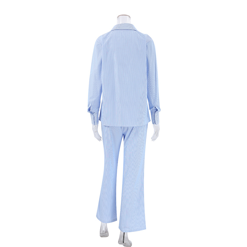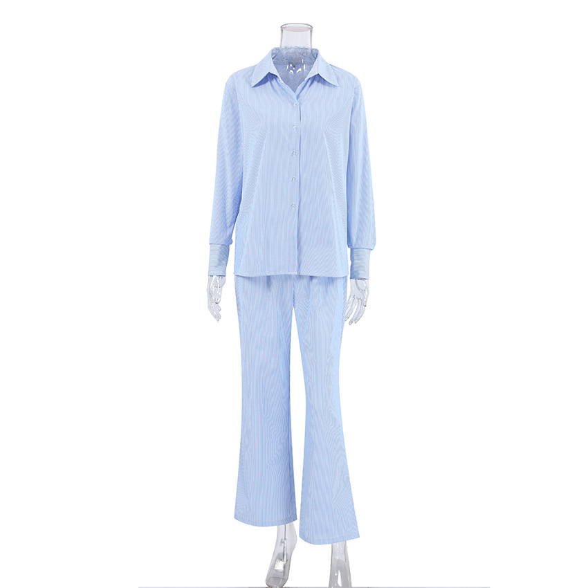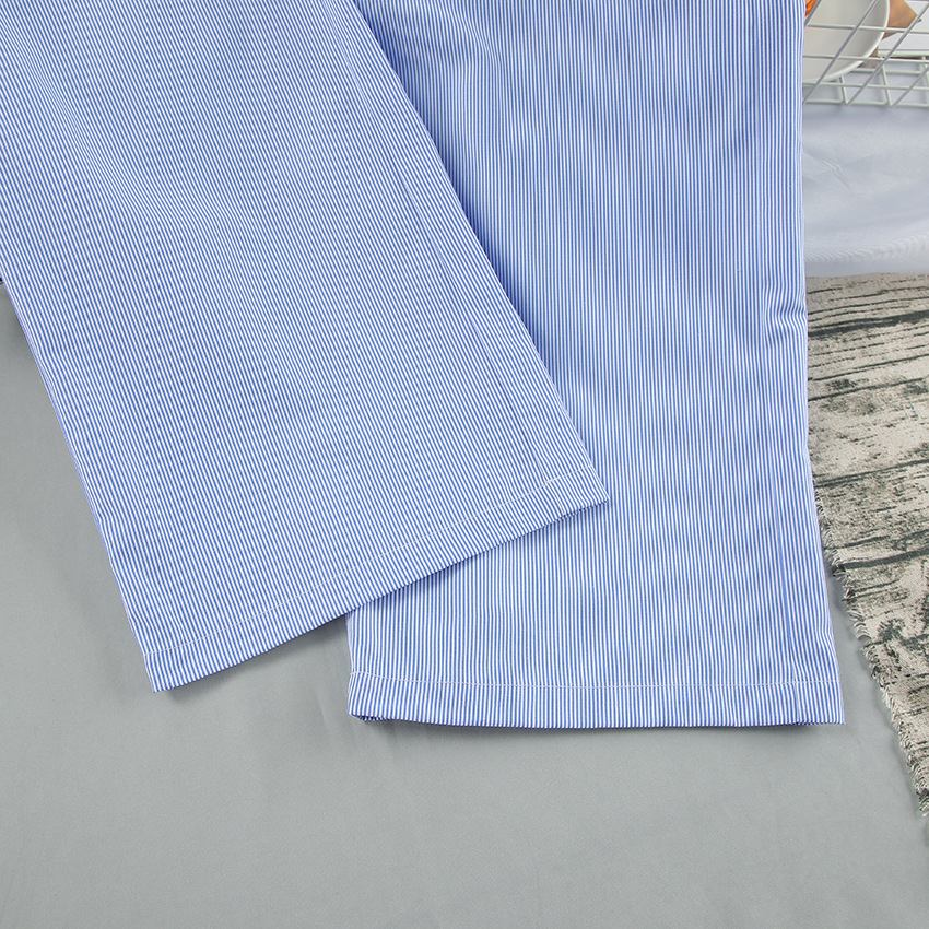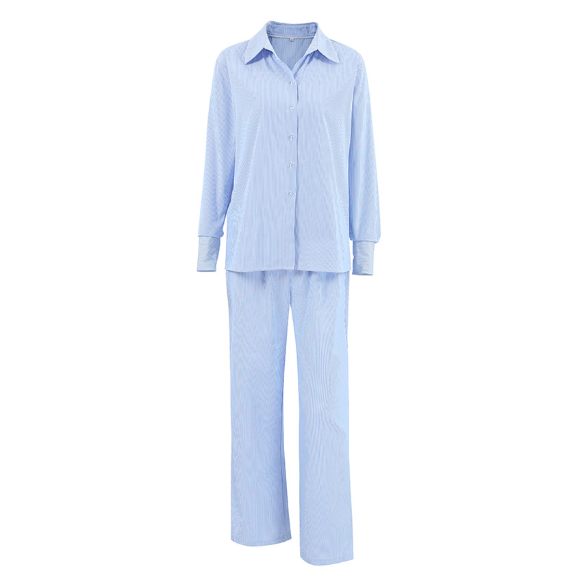 Bequemer, lockerer, blau gestreifter, bedruckter Pyjama mit langen Ärmeln für draußen