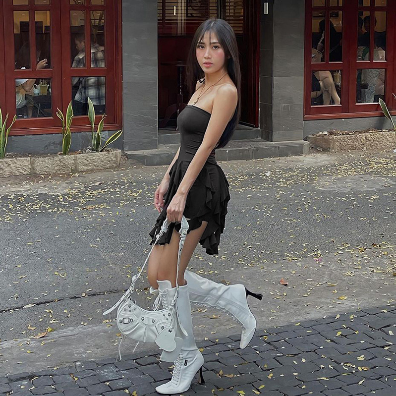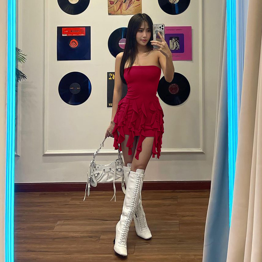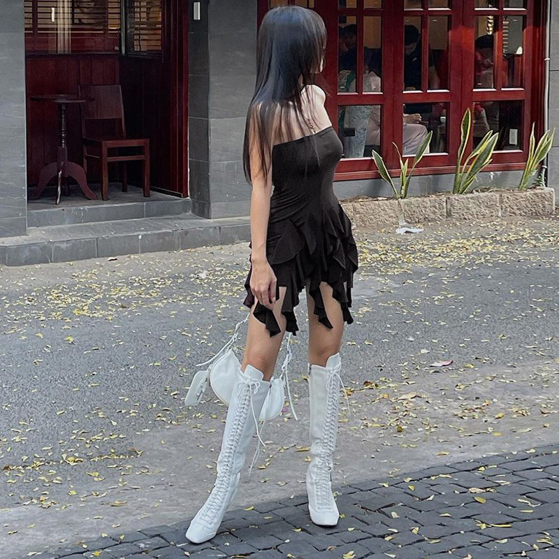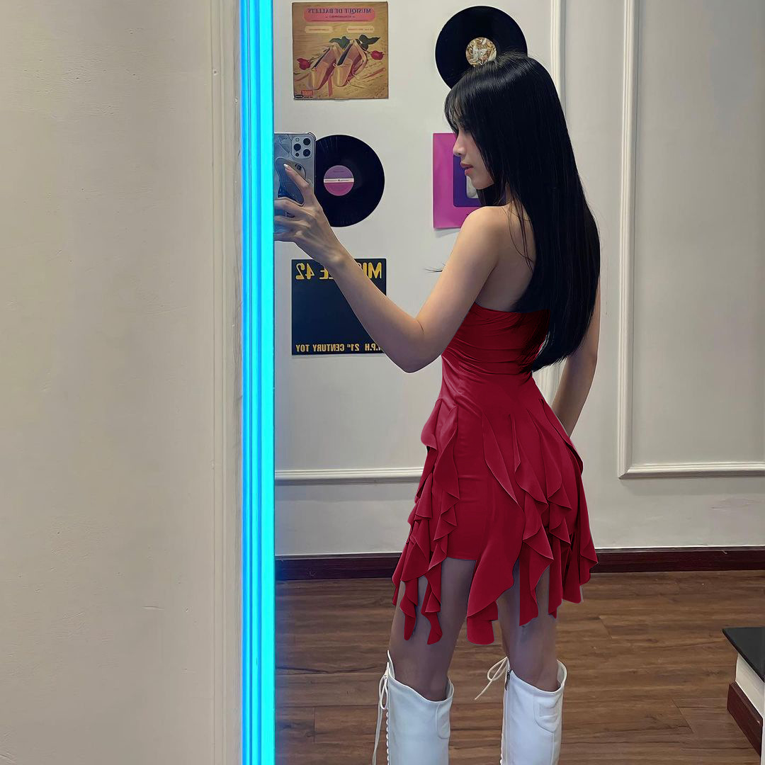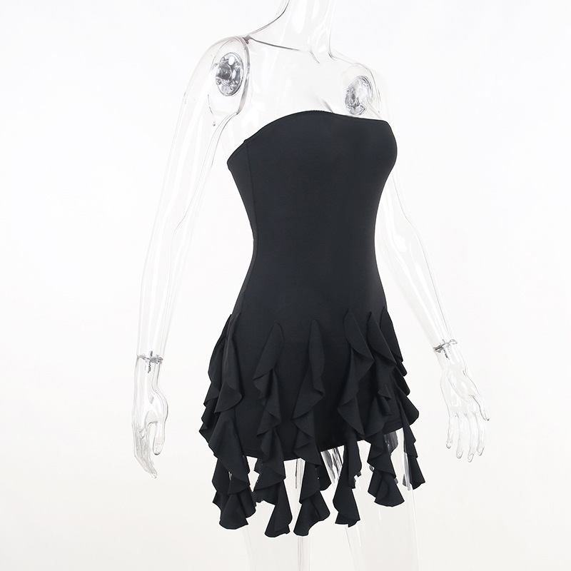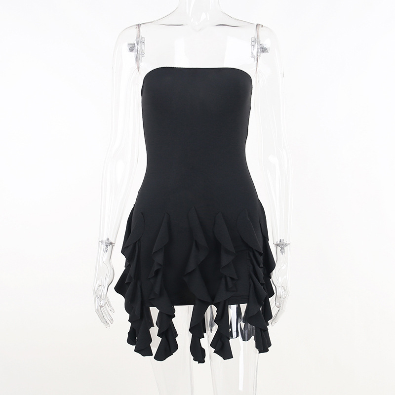 Anmutiges Tube-Top mit Volant und Schößchen an der Hüfte, Wickelkleid, Nischenkleid