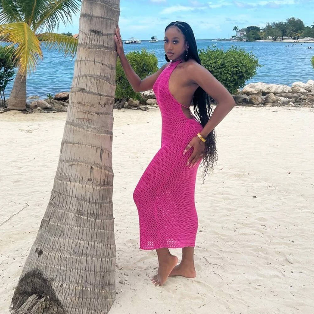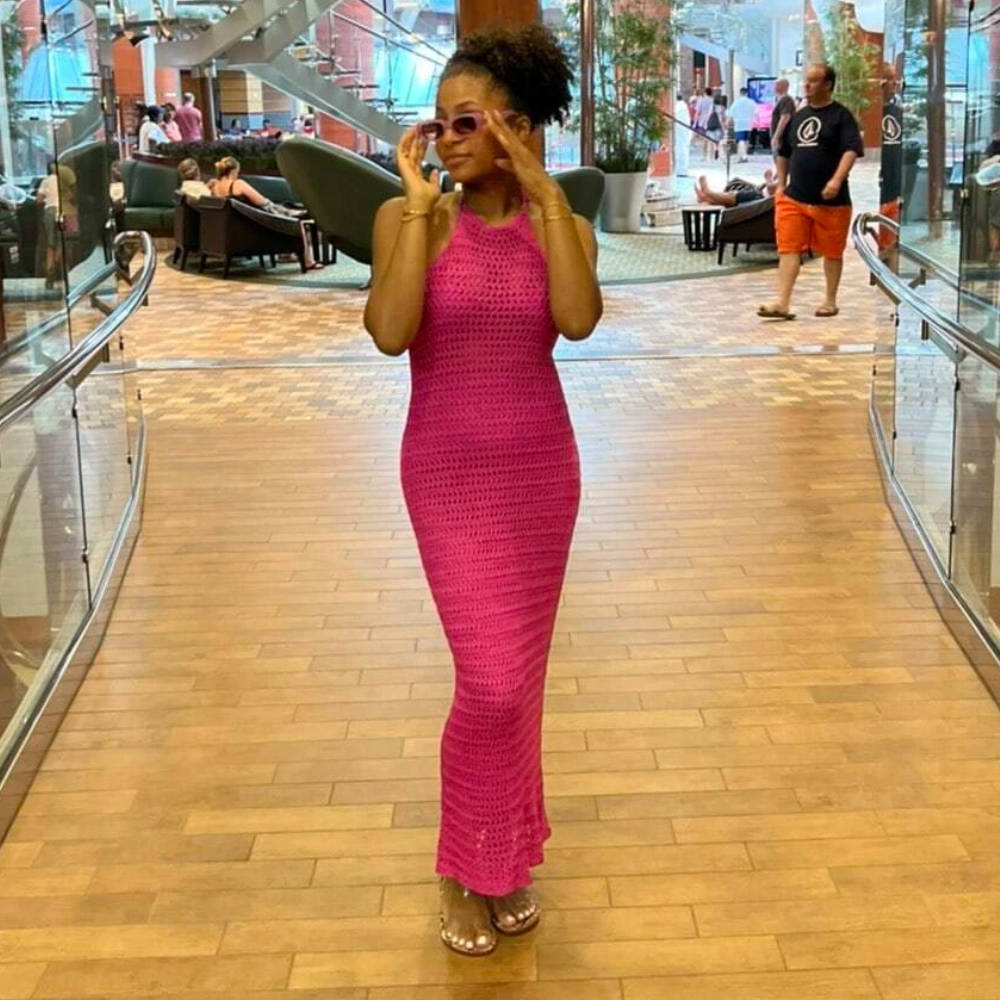 Neckholder-Maxikleid mit rückenfreiem Schnitt, ärmellos, Strandkleid im Bohemian-Stil, lang, mit Aussparungen