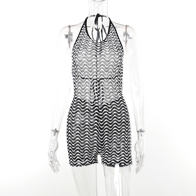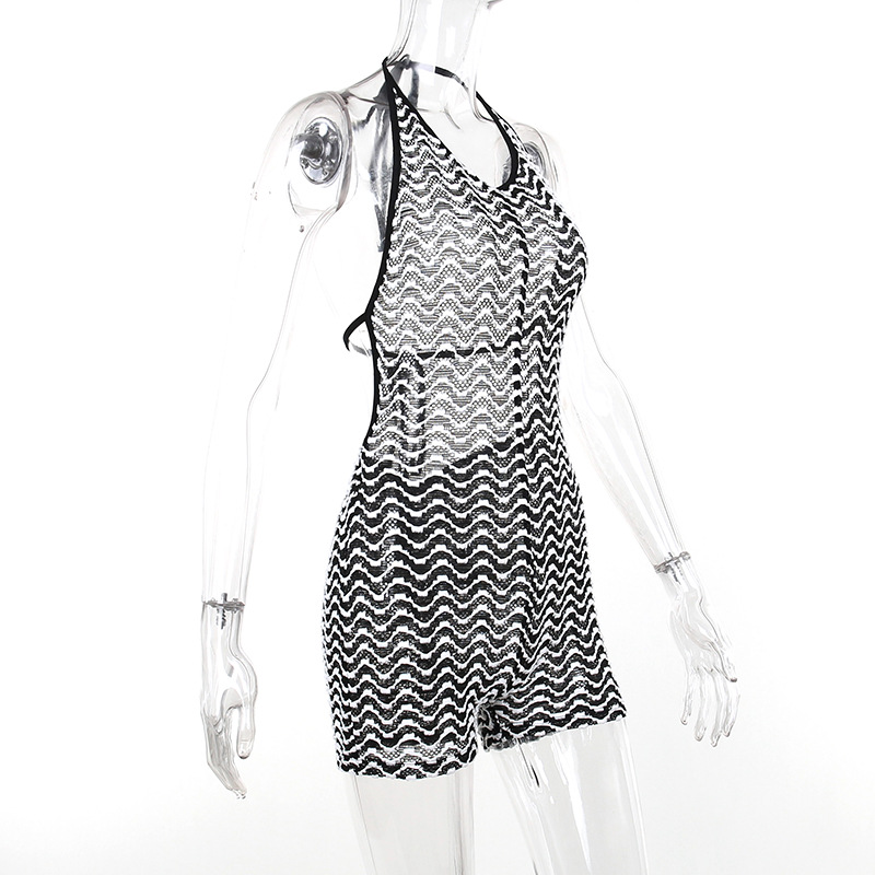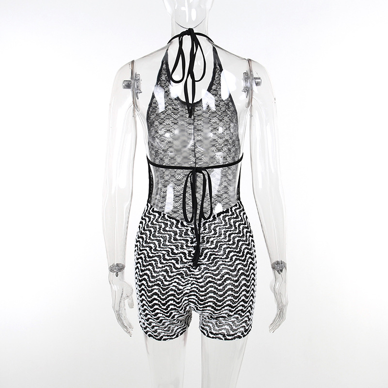 Neckholder mit Hosenträgern, kontrastfarben gestreift, durchsichtig, schmale Passform, rückenfrei, mit Schnürung