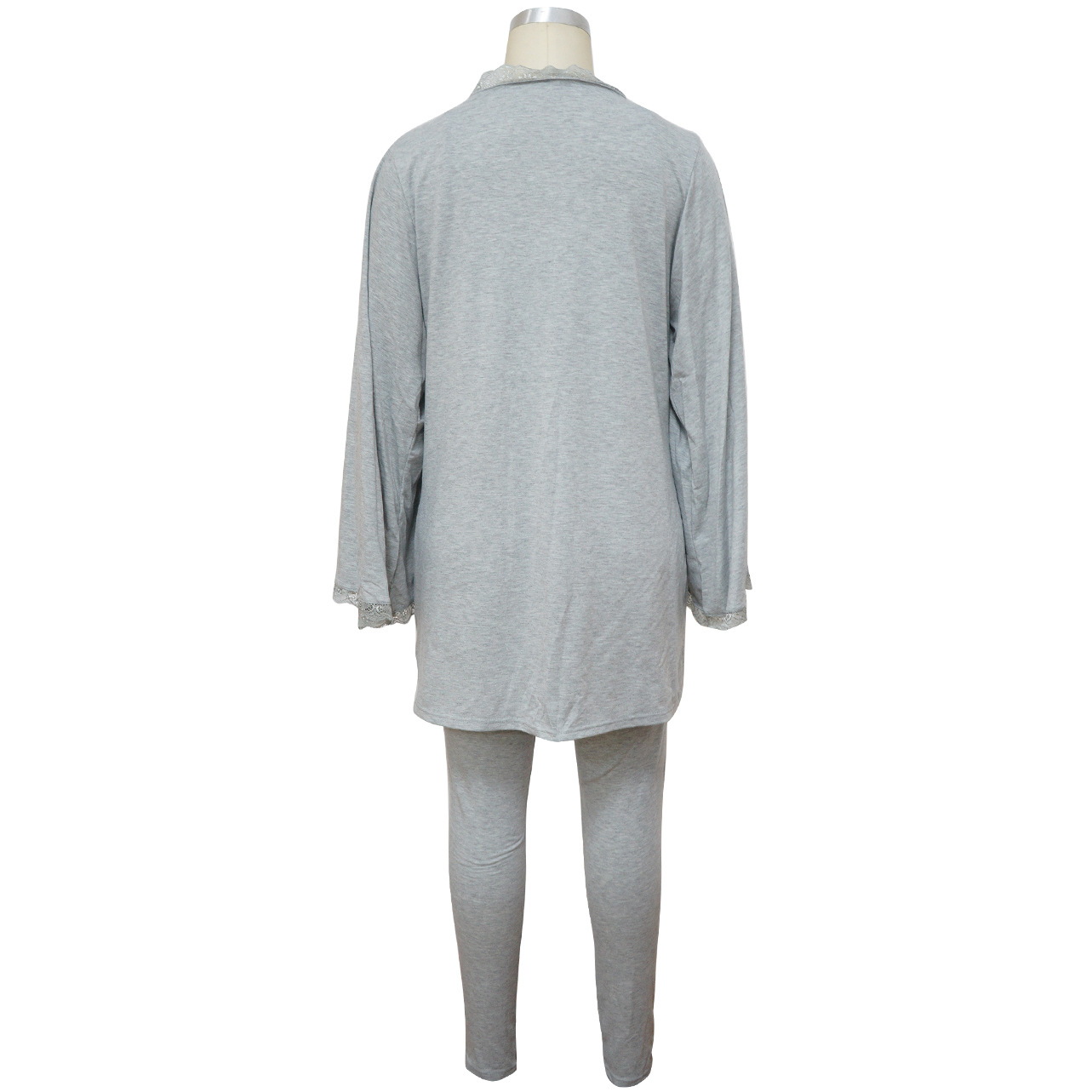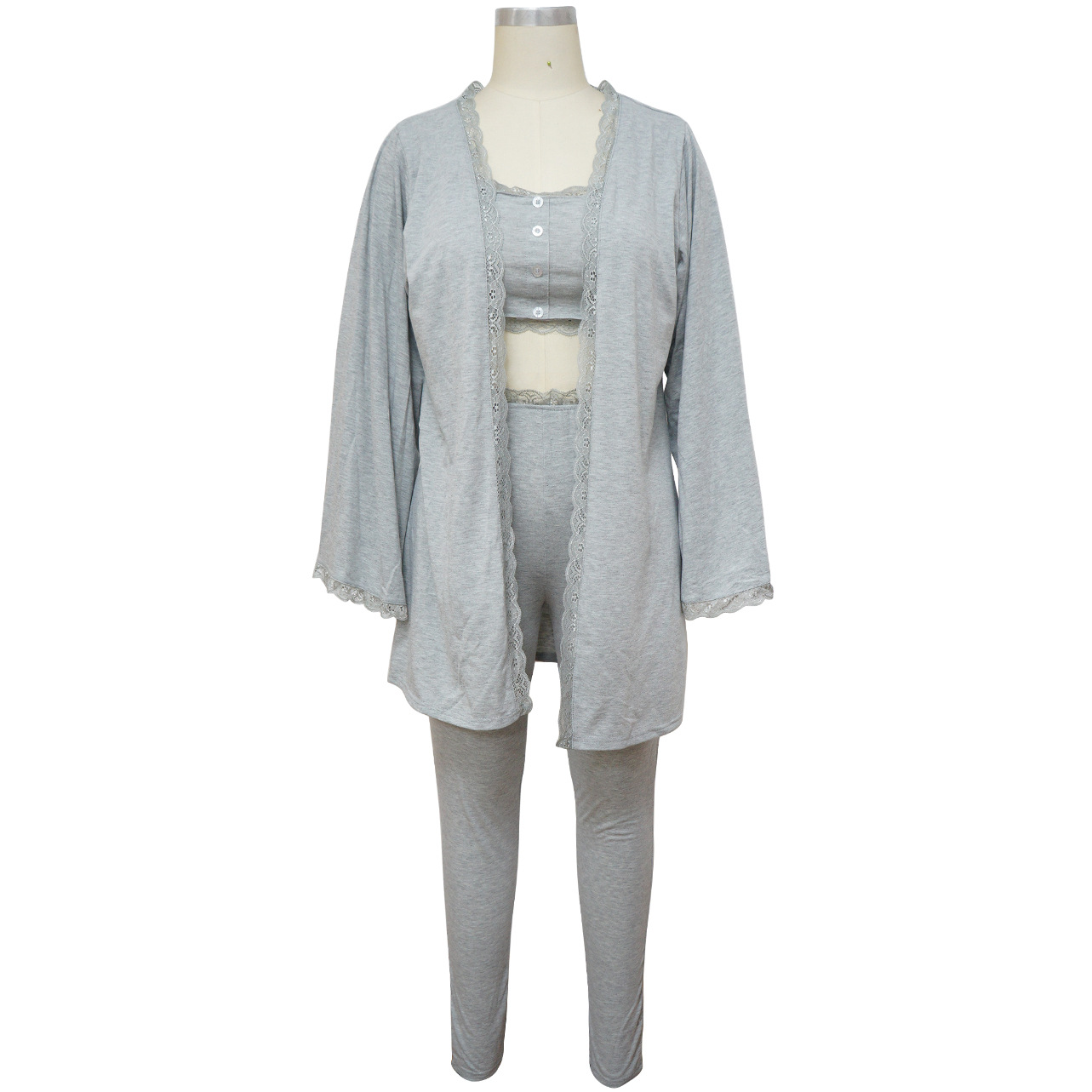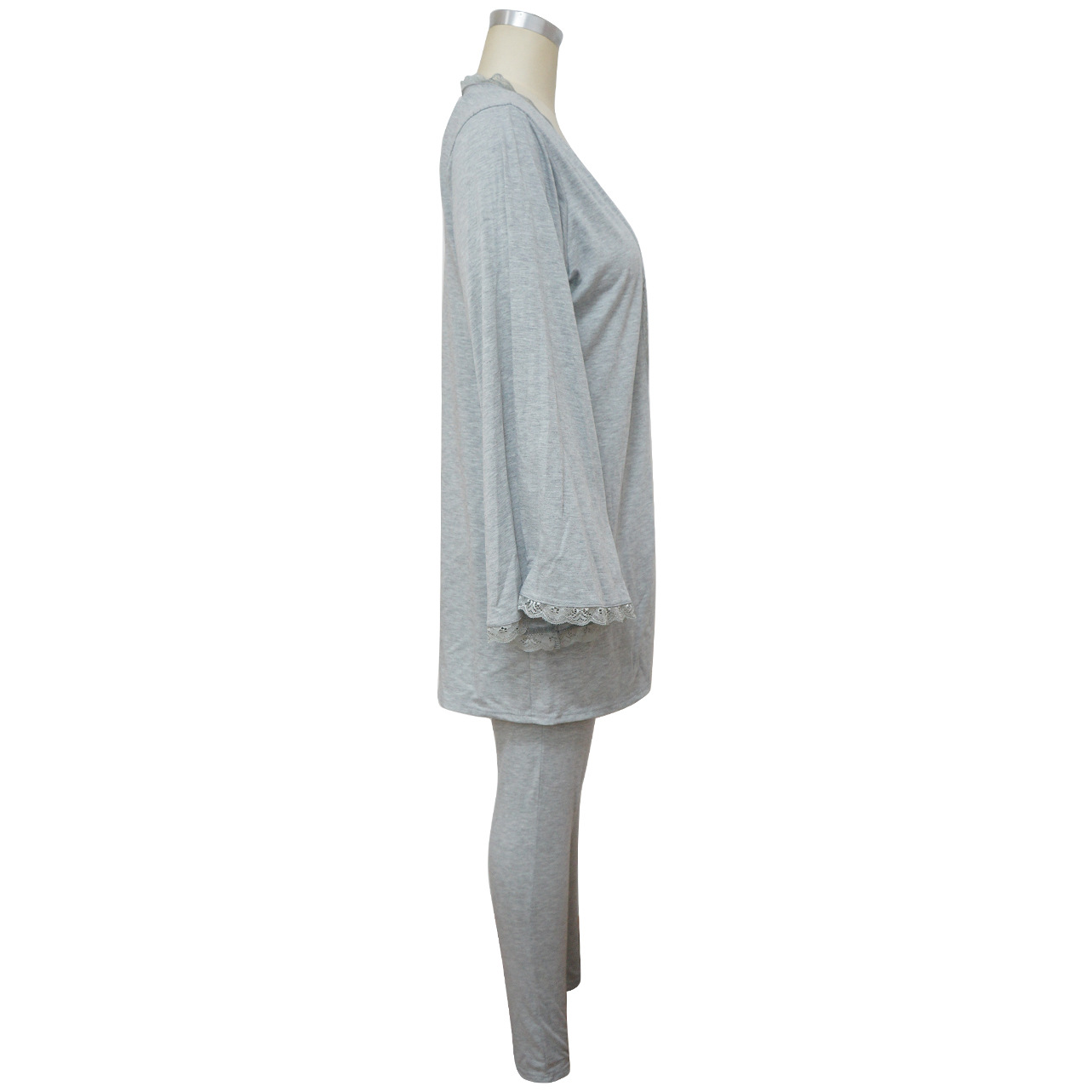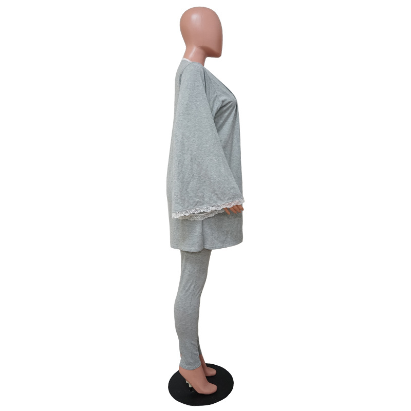 Home Wear Einfarbiger lässiger Spitzenhosen-Pyjama Dreiteiliges Set