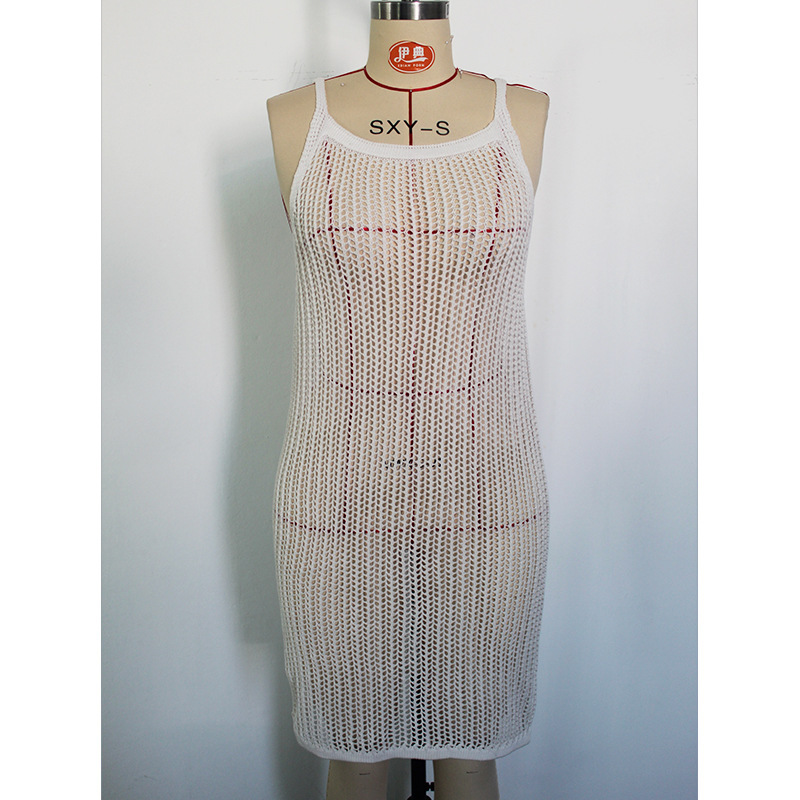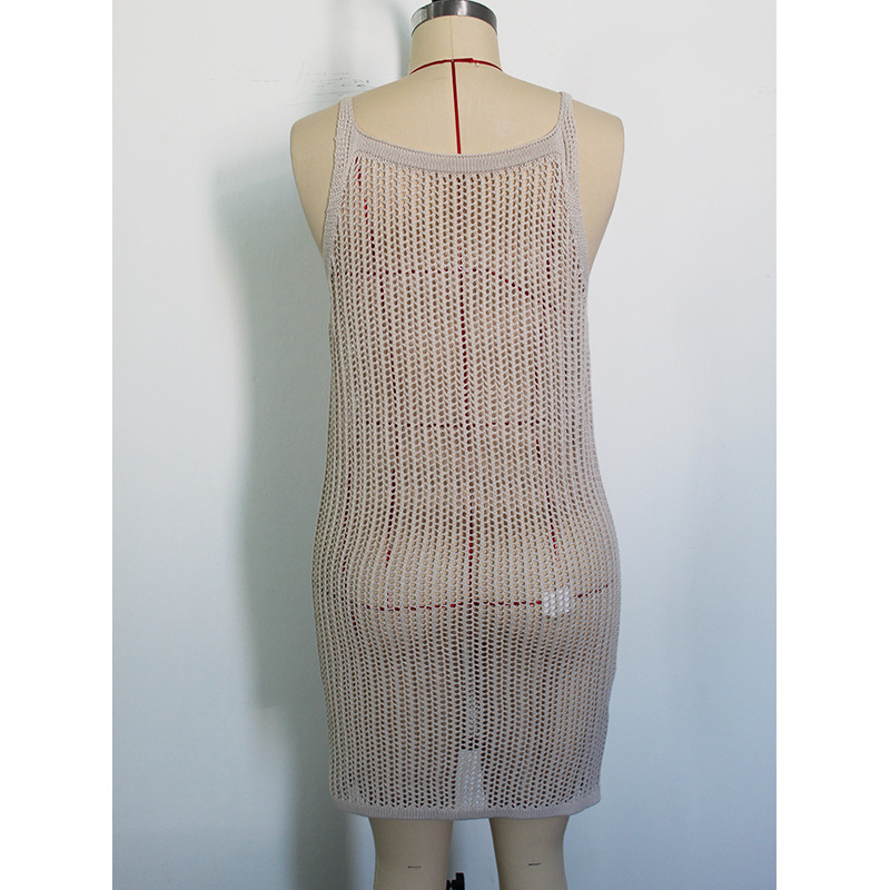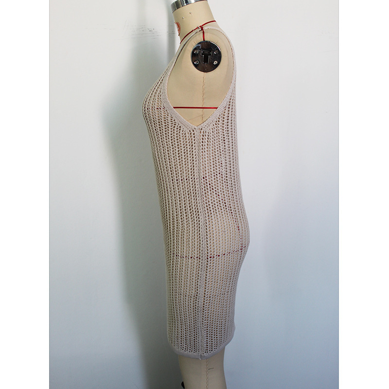 Gestrickte, ausgehöhlte Weste, kurzes, mittellanges, enges Kleid mit Trägern, Strandüberzug, Bikiniüberzug