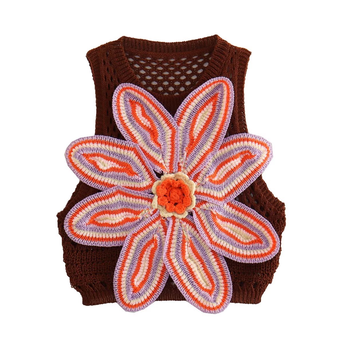 Gestrickte Weste Handgemachte Weste mit Blumenmuster