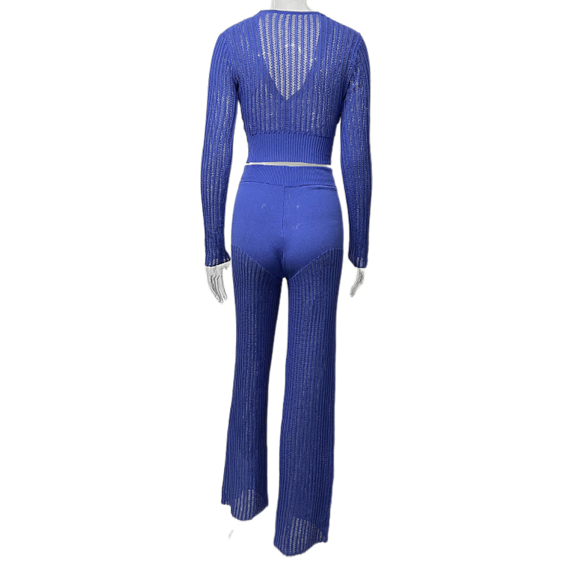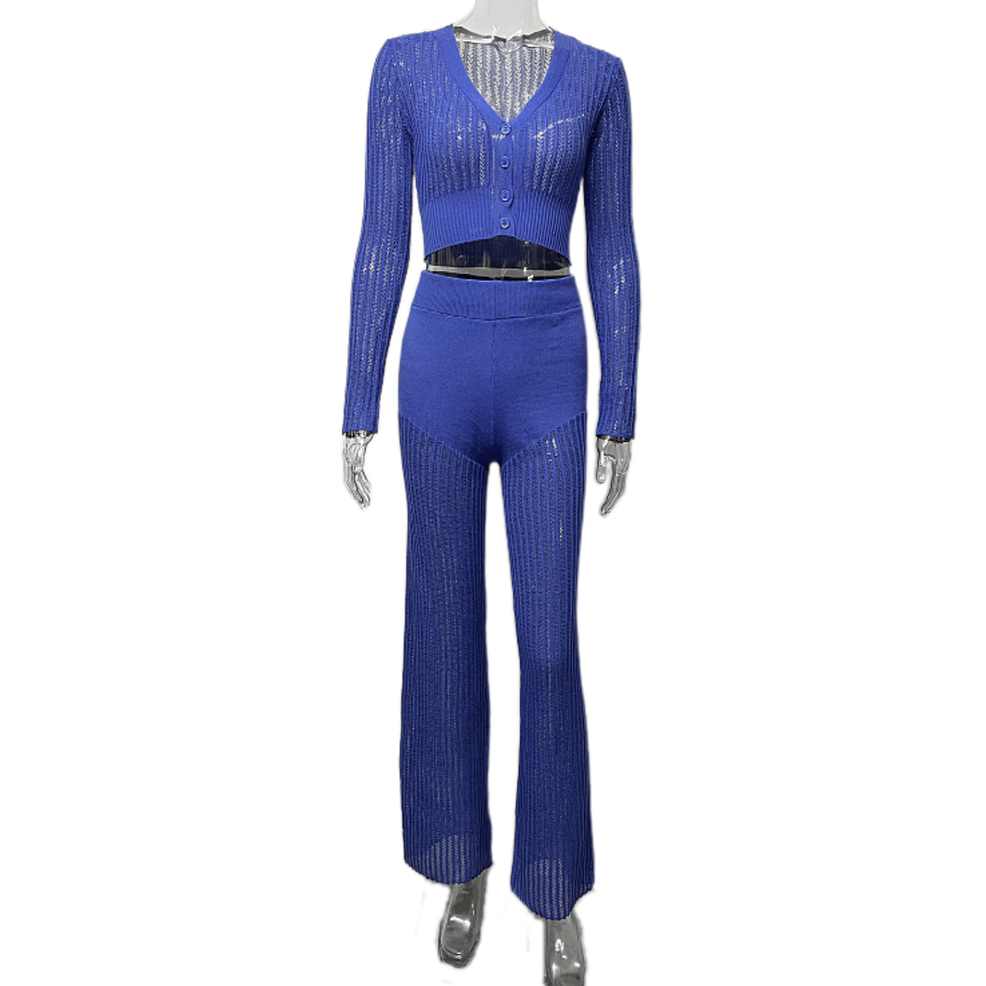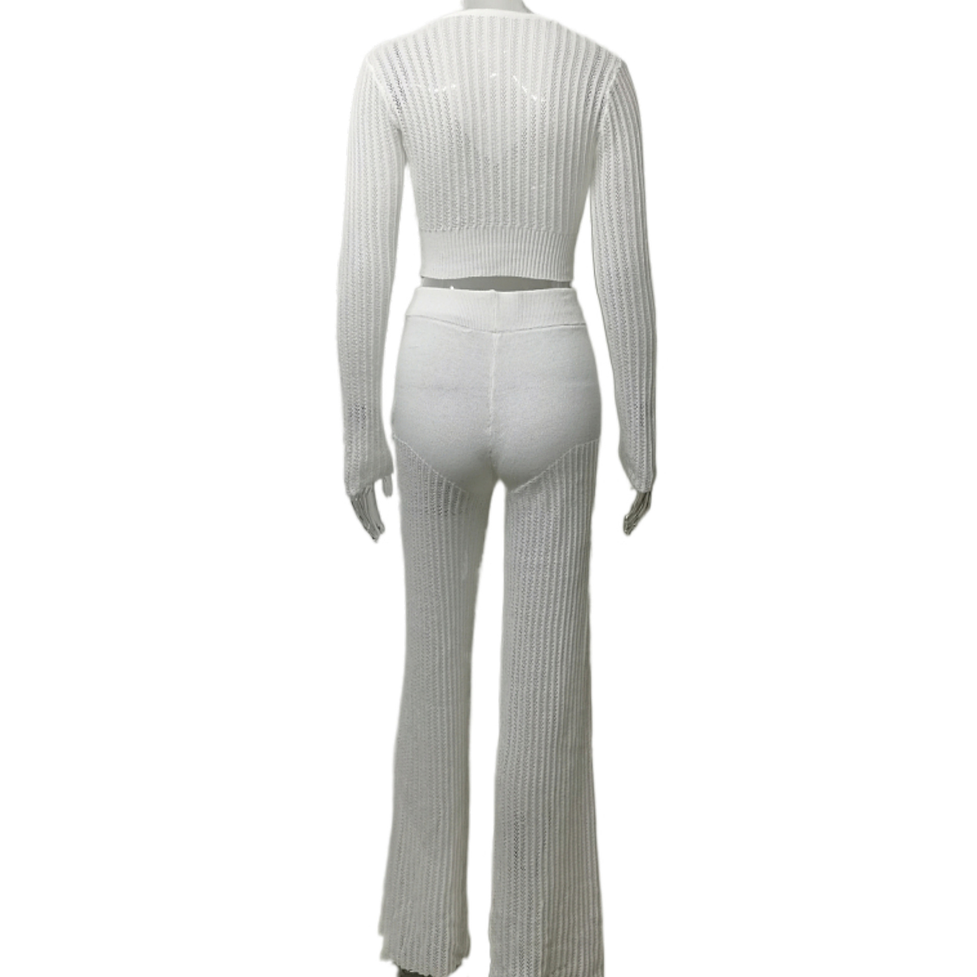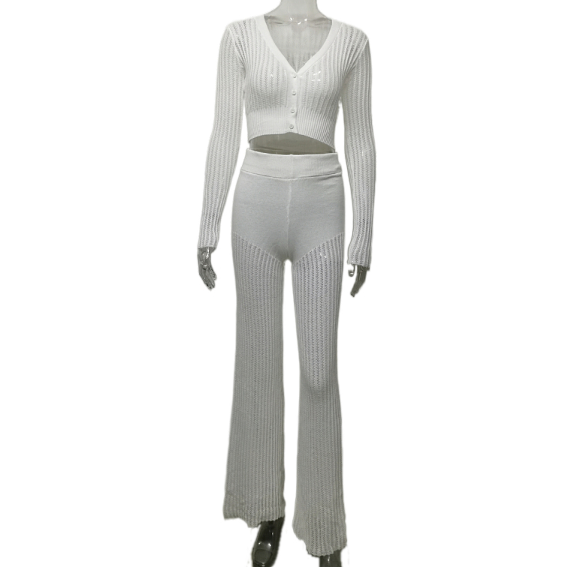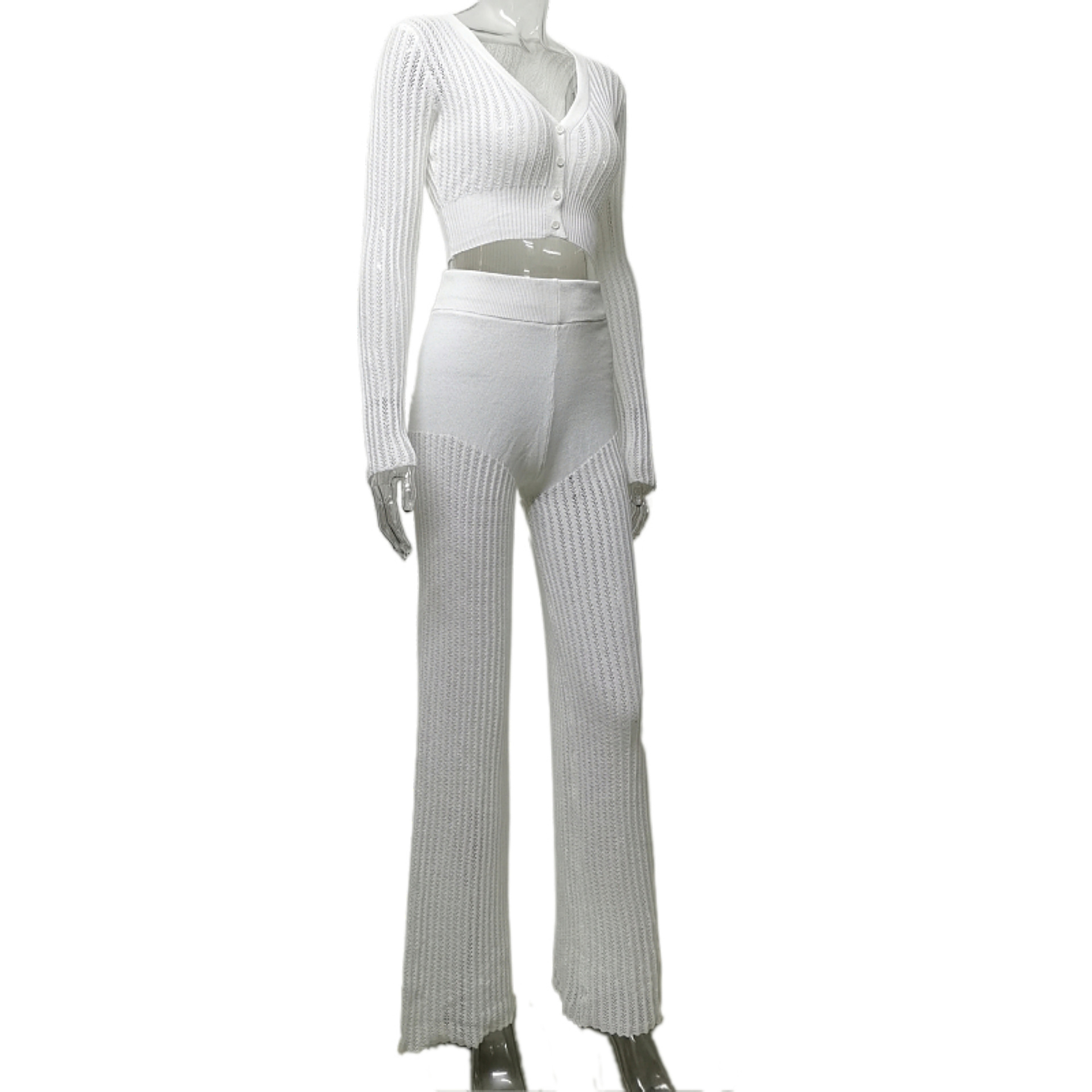 Strickanzug Durchsichtiger lässiger einfarbiger, ausgehöhlter Ausschnitt, Hose mit hoher Taille, Büroanzug
