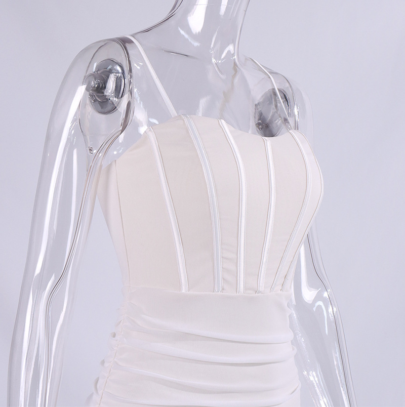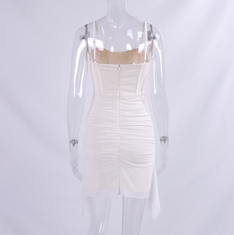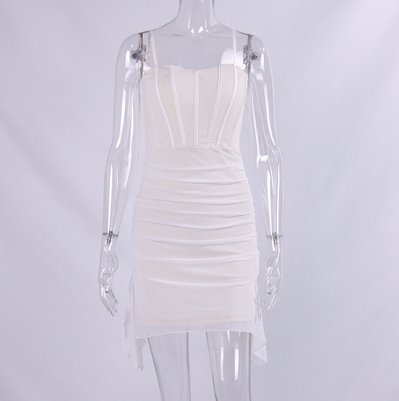 Netzkleid mit Korsett und Stäbchen, rückenfreies Etuikleid, Mini-Camisole