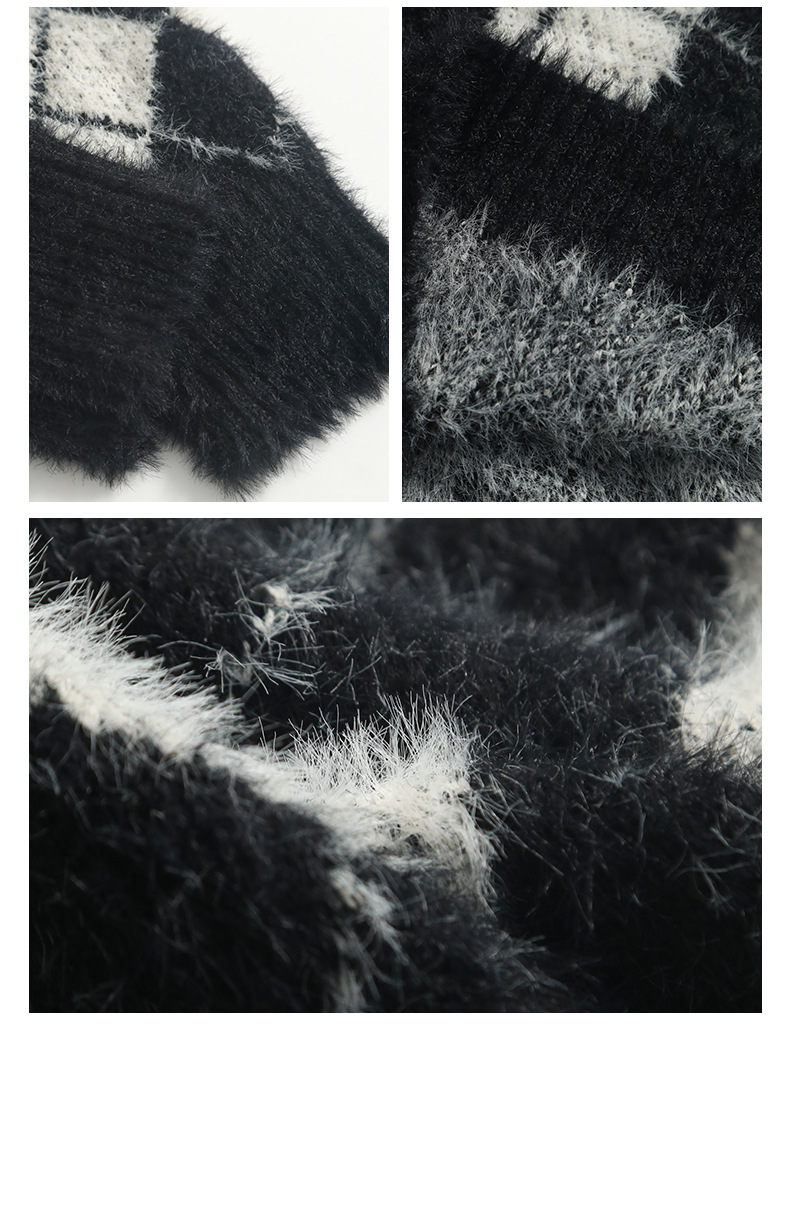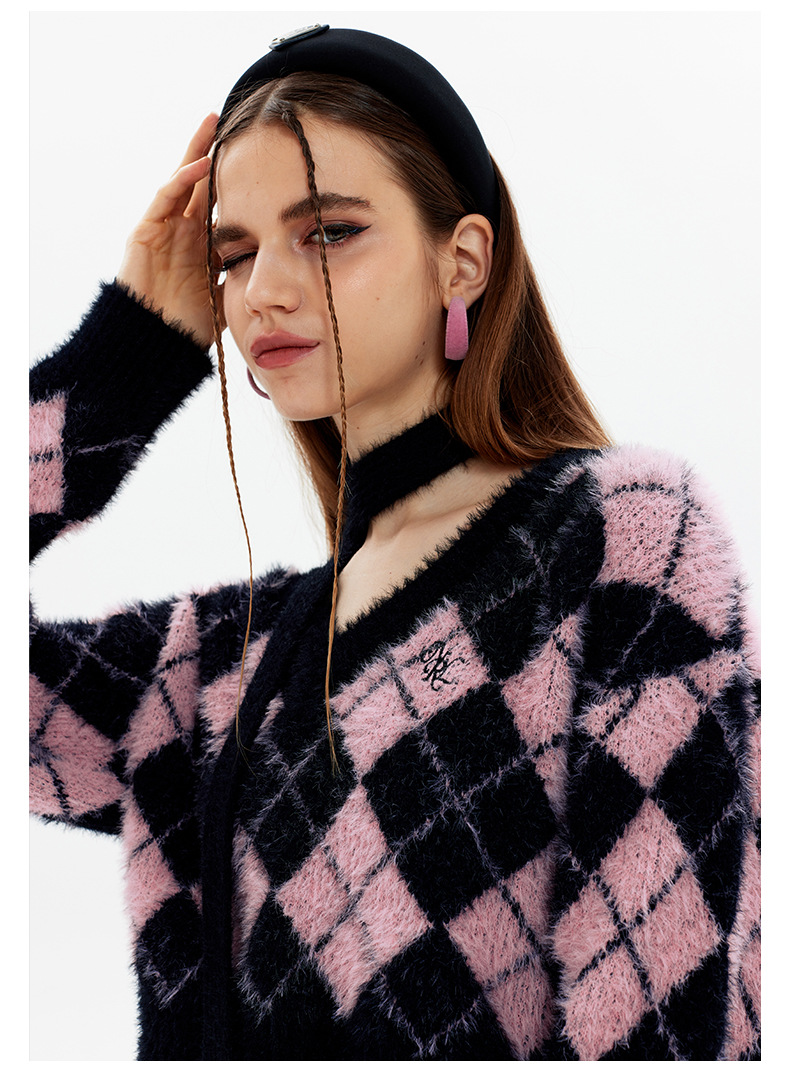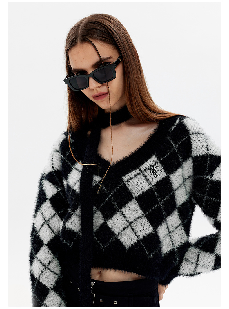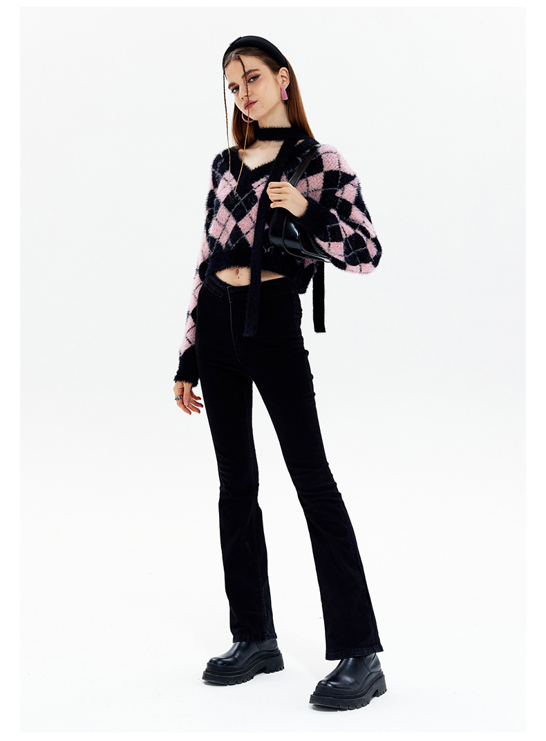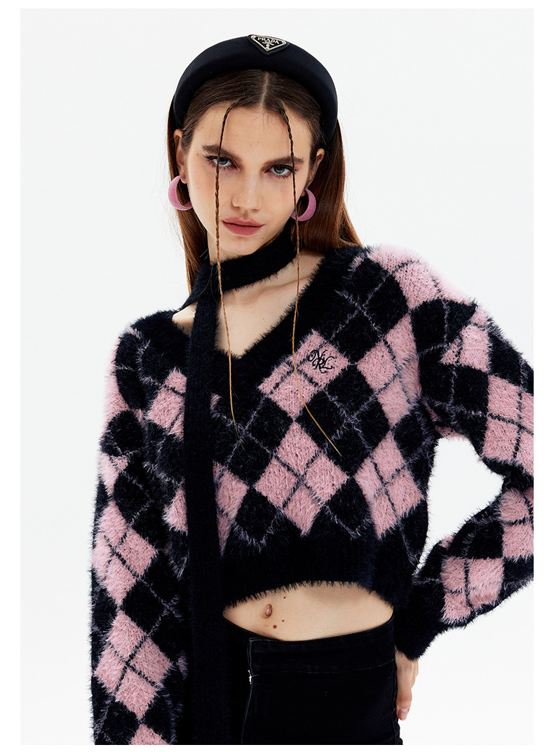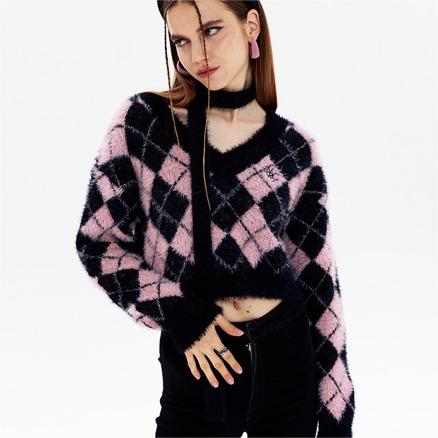 Niche Rhombus Pullover Show Nabelschnur V-Ausschnitt Pullover Mädchen