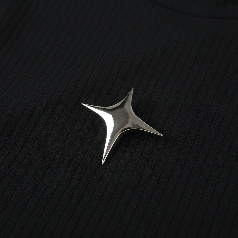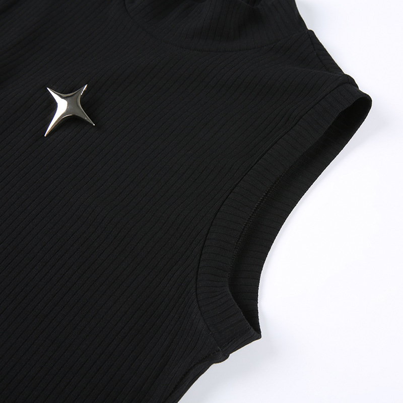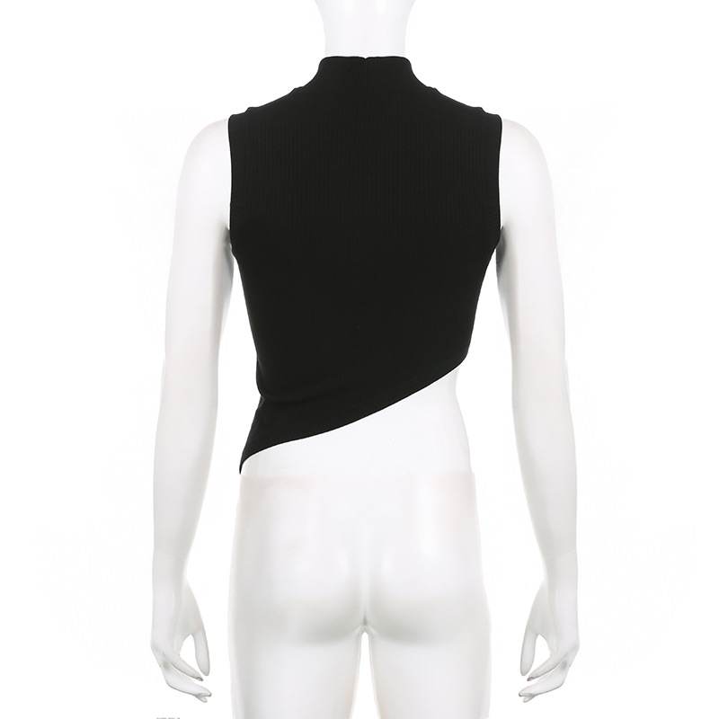 Personalisierte unregelmäßige asymmetrische Saum Rollkragen Metall Dekoration schlanke Strickweste