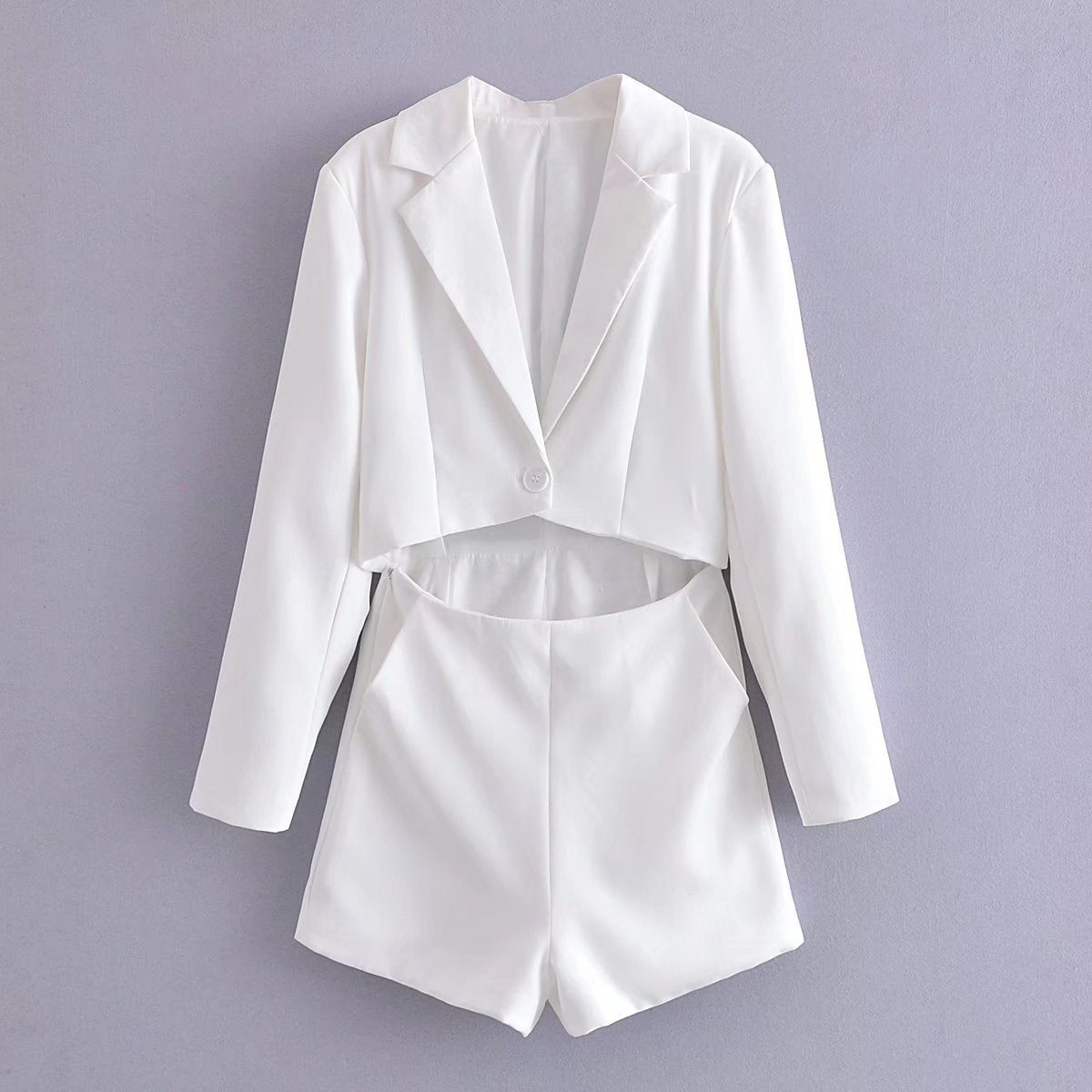 Polokragen, einfarbige Taille, ausgehöhlter Ausschnitt, offenes Ende, lässiger Strampler