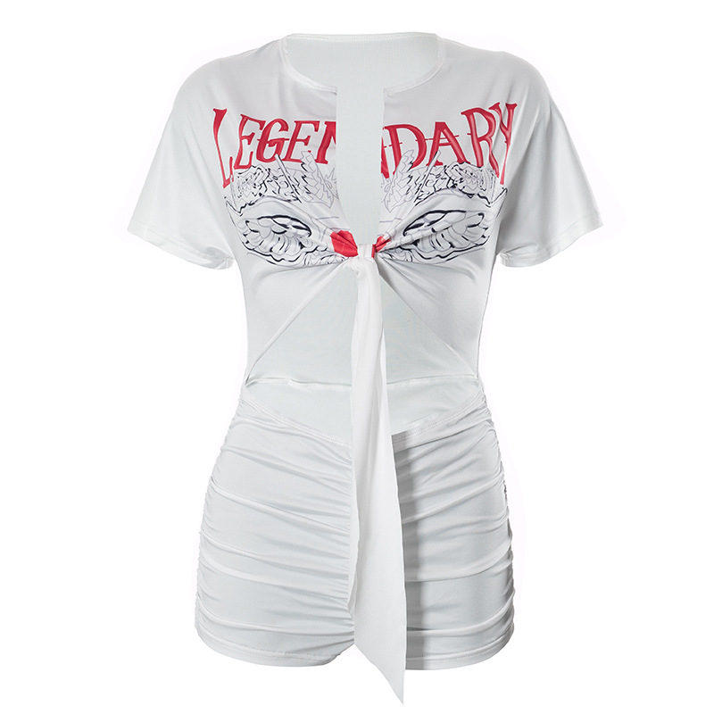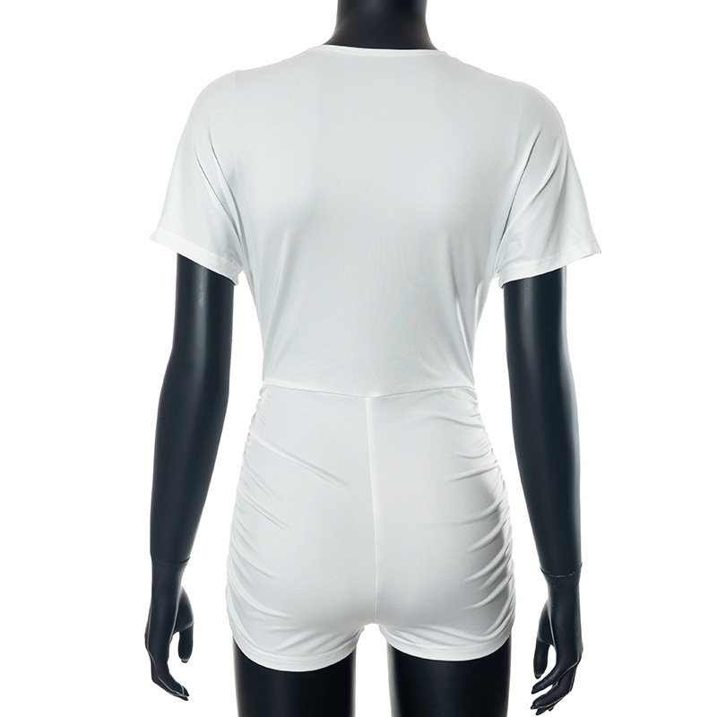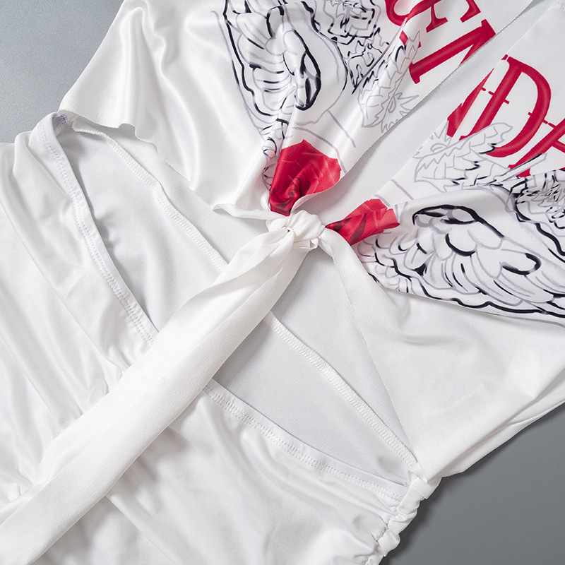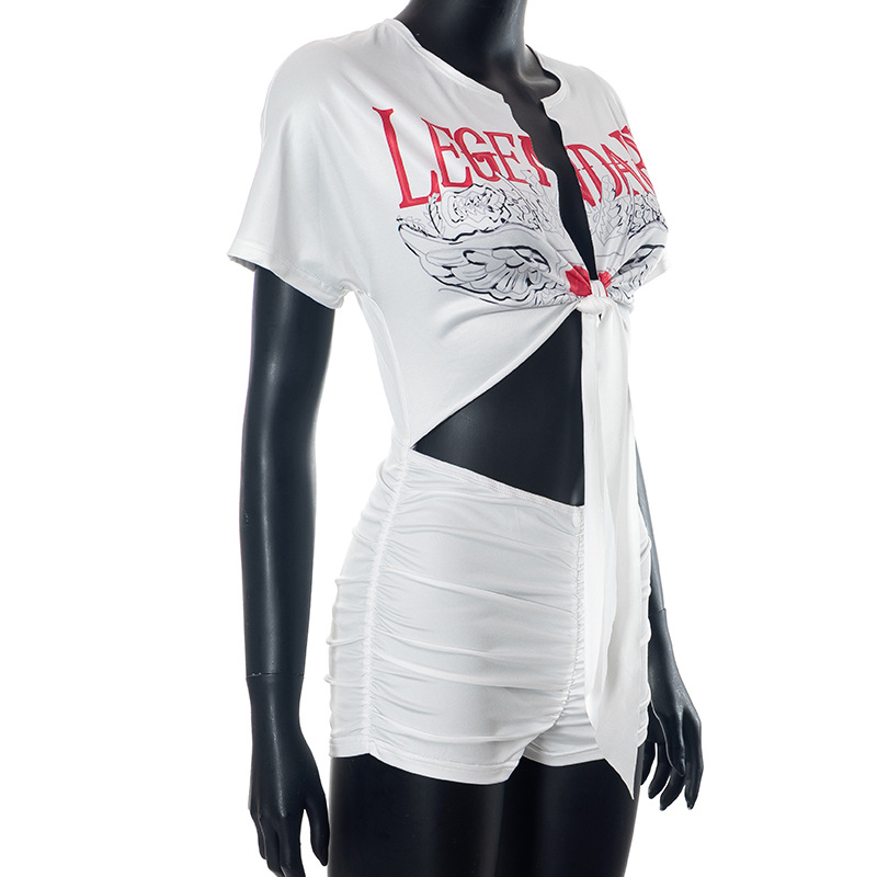 Bedruckter Cardigan mit Schnürung und Plissierung, kurzärmliger Strampler