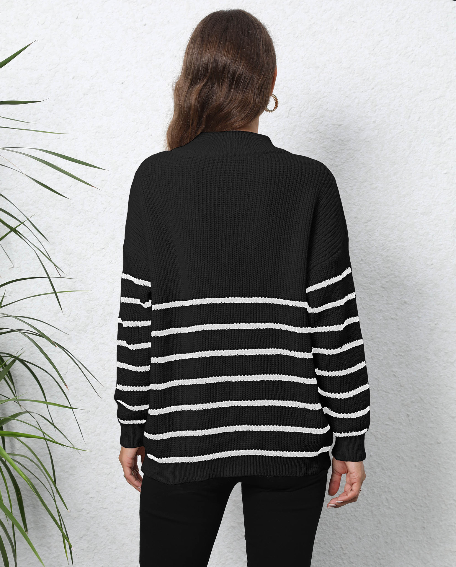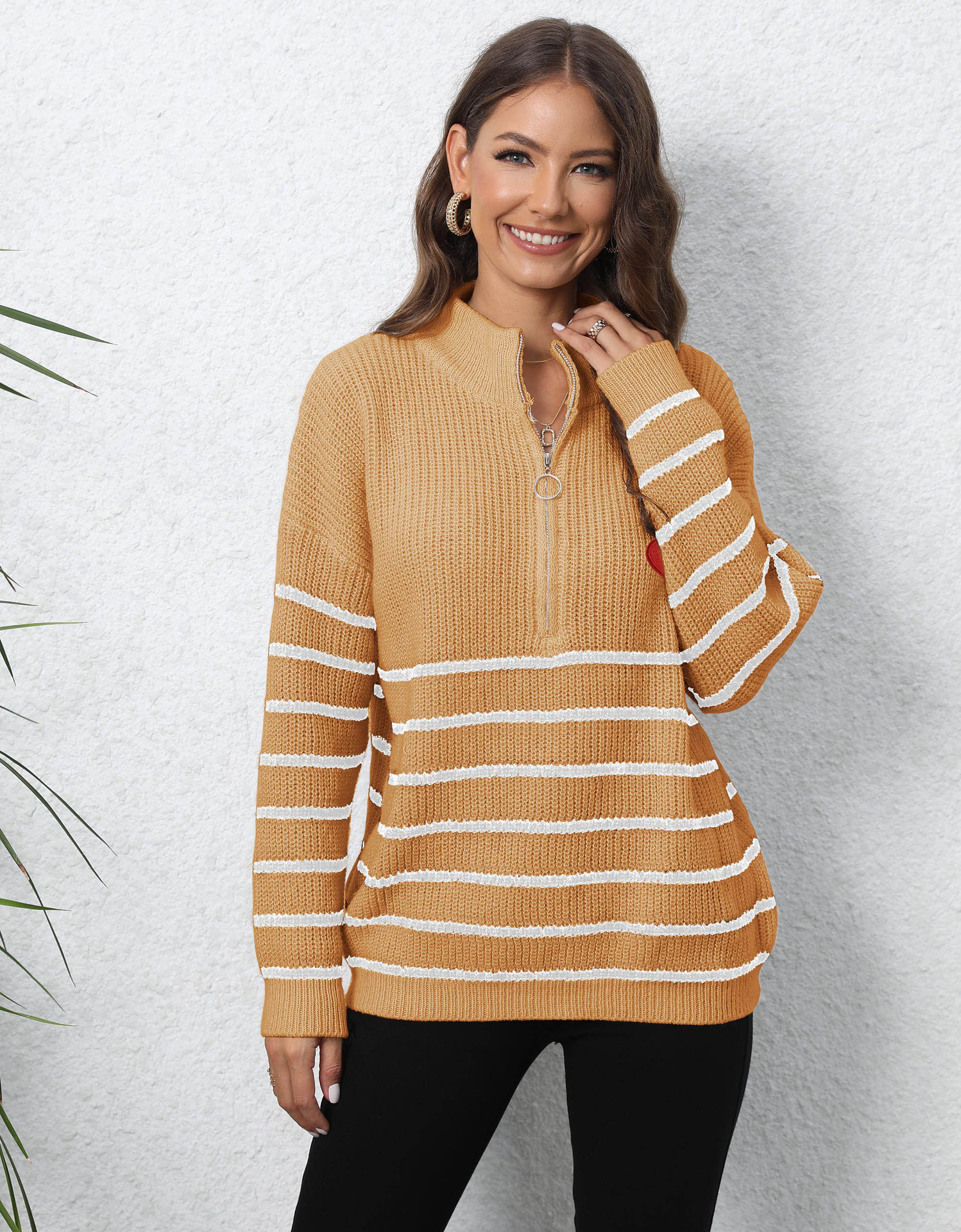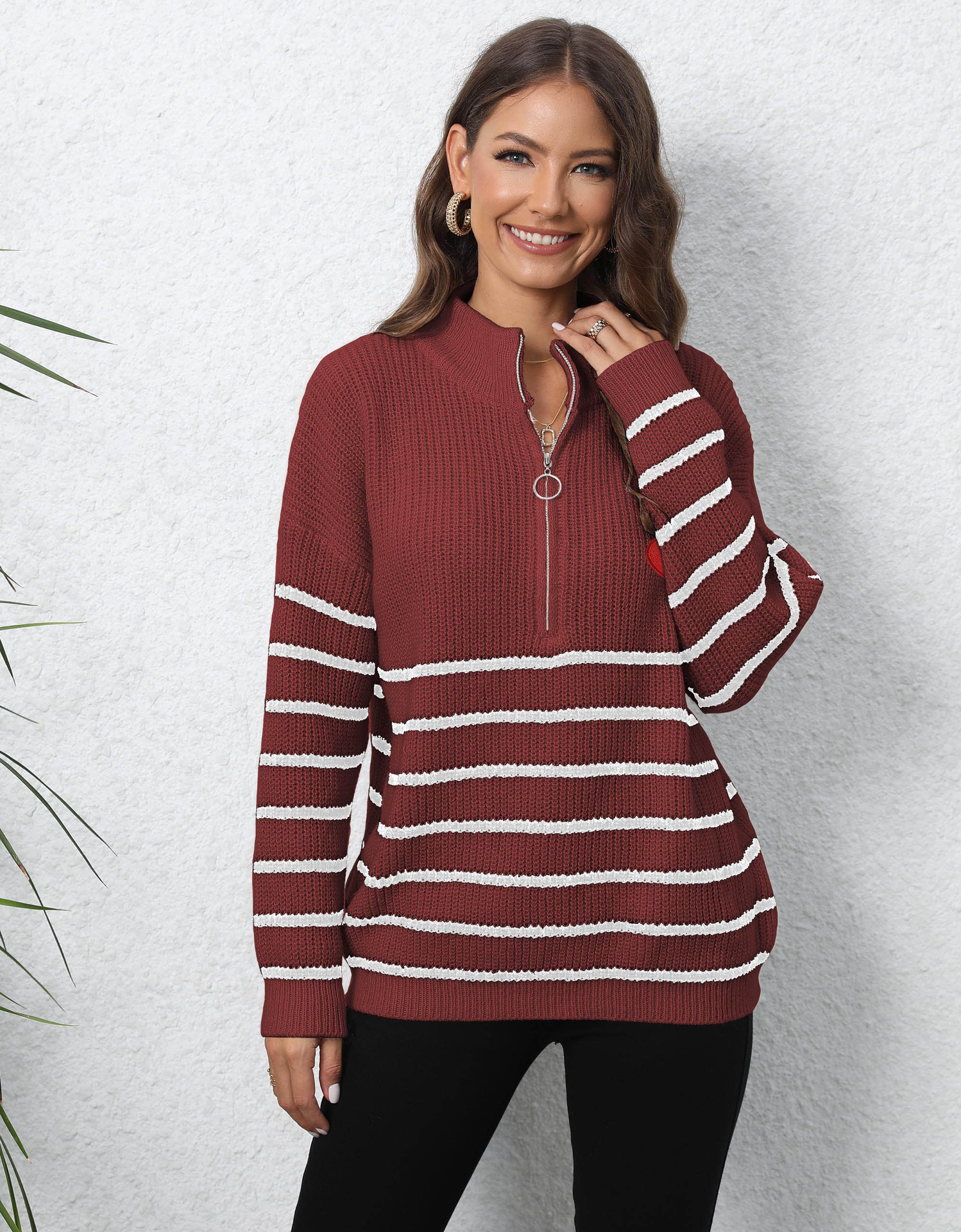 Pullover Pullover Gewebte Streifen Nähte Halb Rollkragen Lose Zip Top Pullover