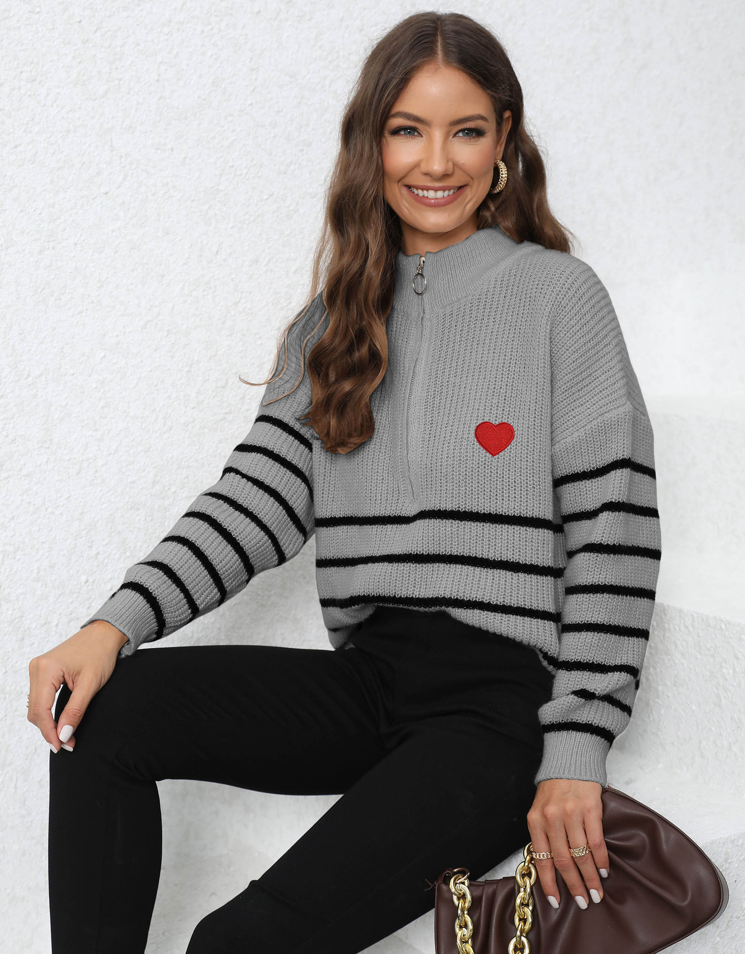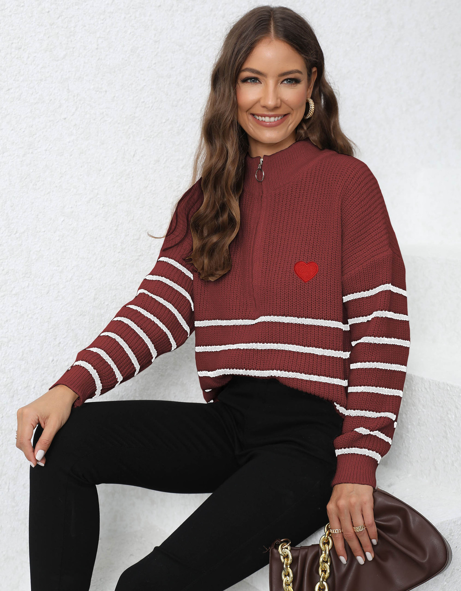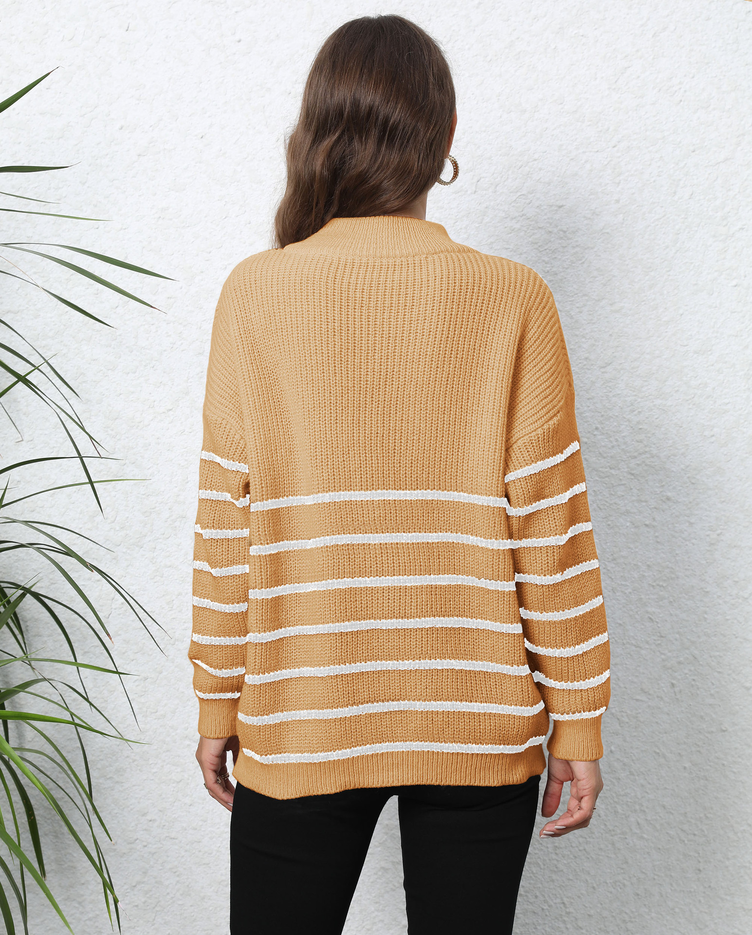 Pullover Pullover Gewebte Streifen Nähte Halb Rollkragen Lose Zip Top Pullover