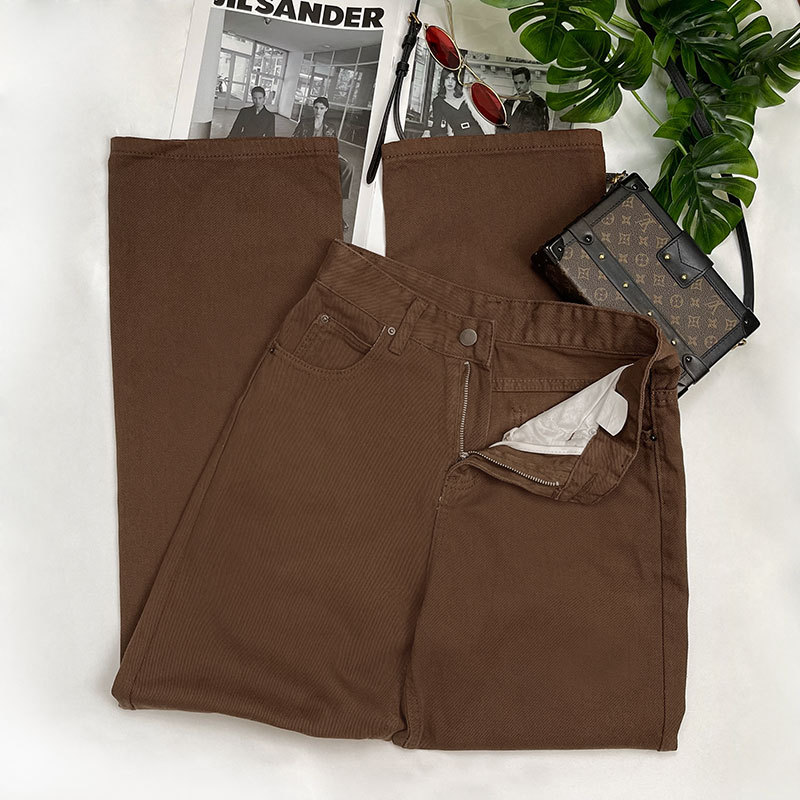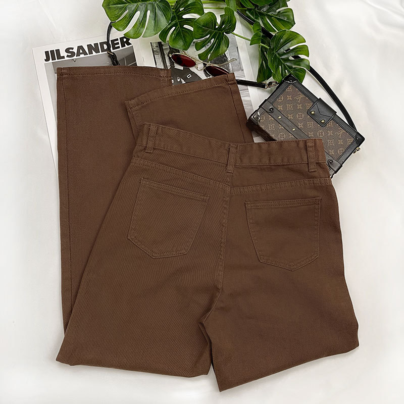 Retro Gerade Hohe Taille Abnehmen Braun Jeans Herbst