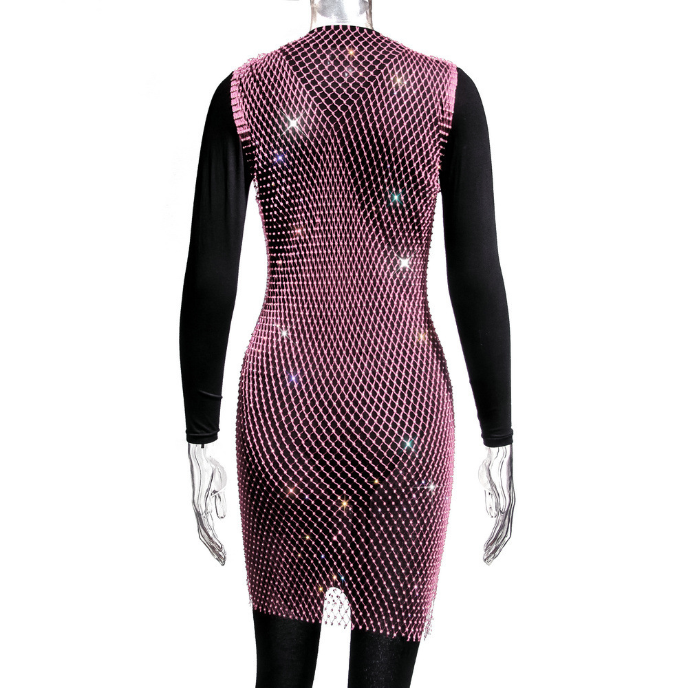 Strass-Netzoberteil mit Strasssteinen, kurzärmelig