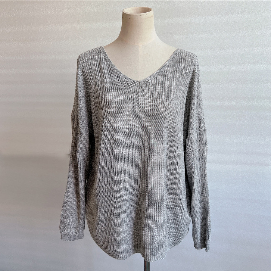 Einfacher, lockerer, einfarbiger, großer V-Ausschnitt, langärmeliger, dünner Strickpullover