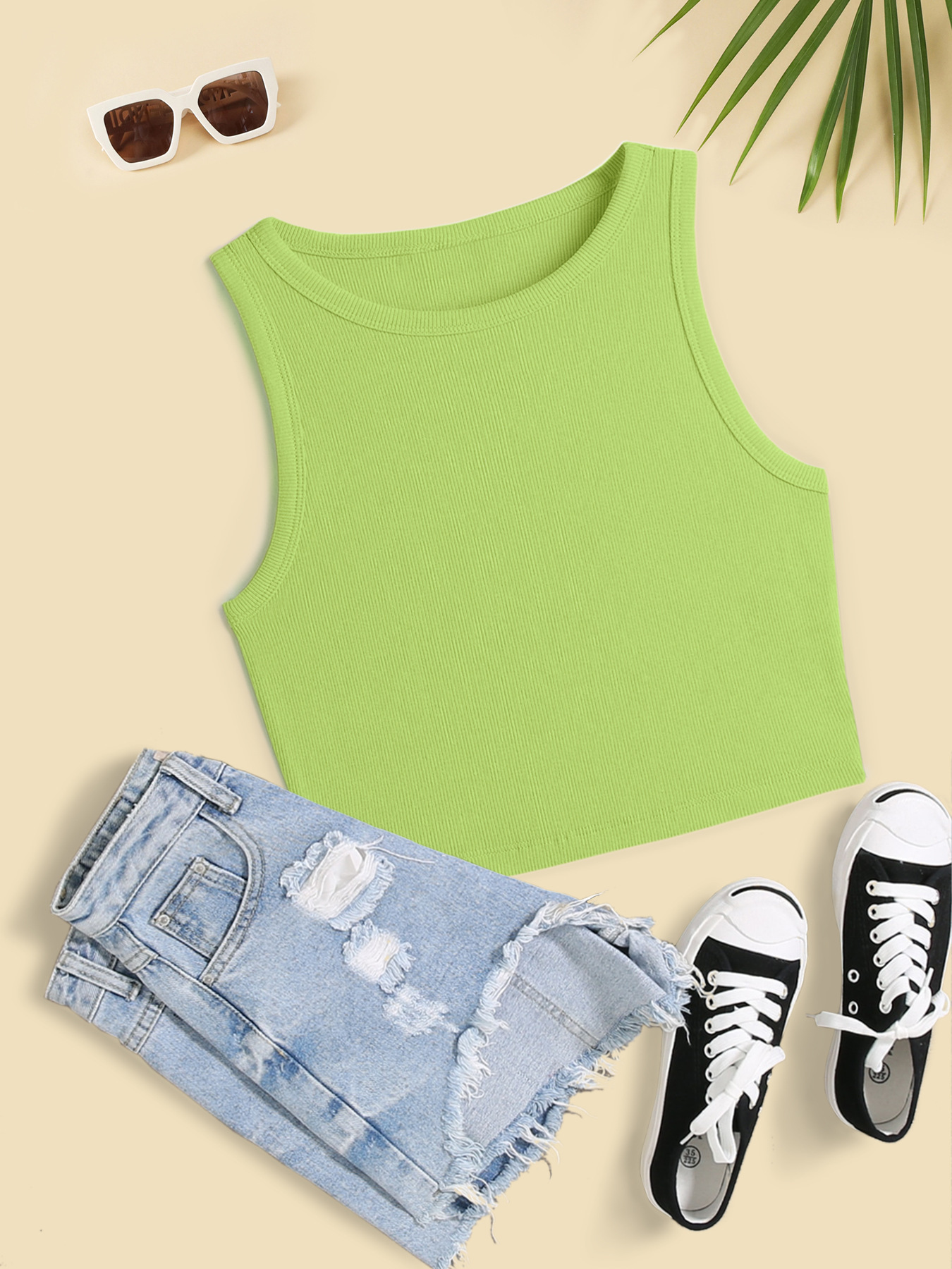 Ärmellose Weste, mehrfarbig, schmale Passform, Rundhalsausschnitt, schwarze kurze Top-Weste