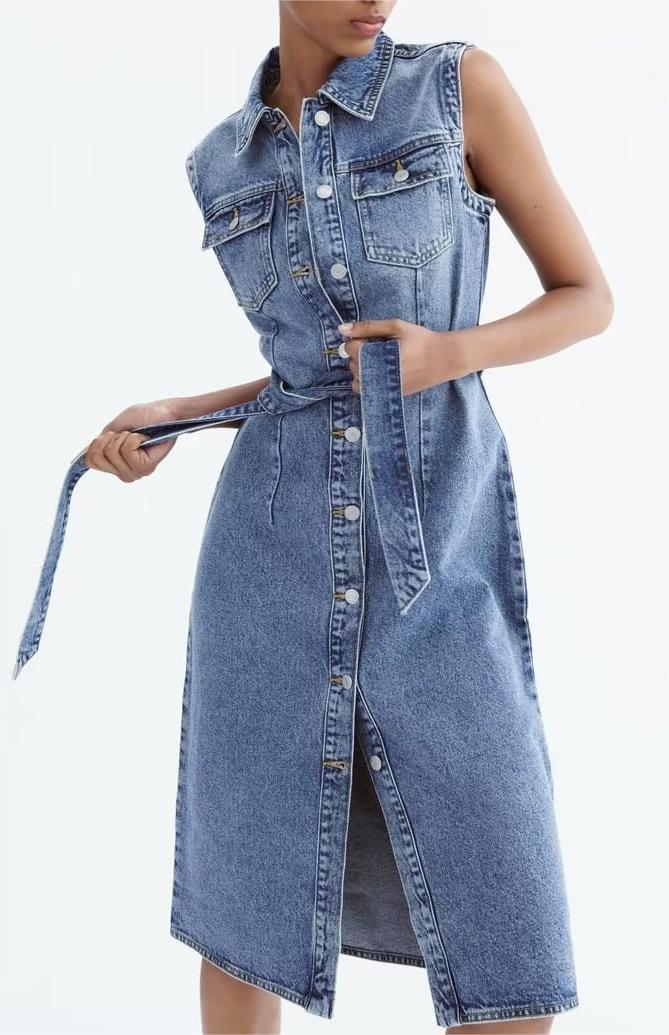 Schlankes, figurbetontes, ärmelloses Jeanskleid