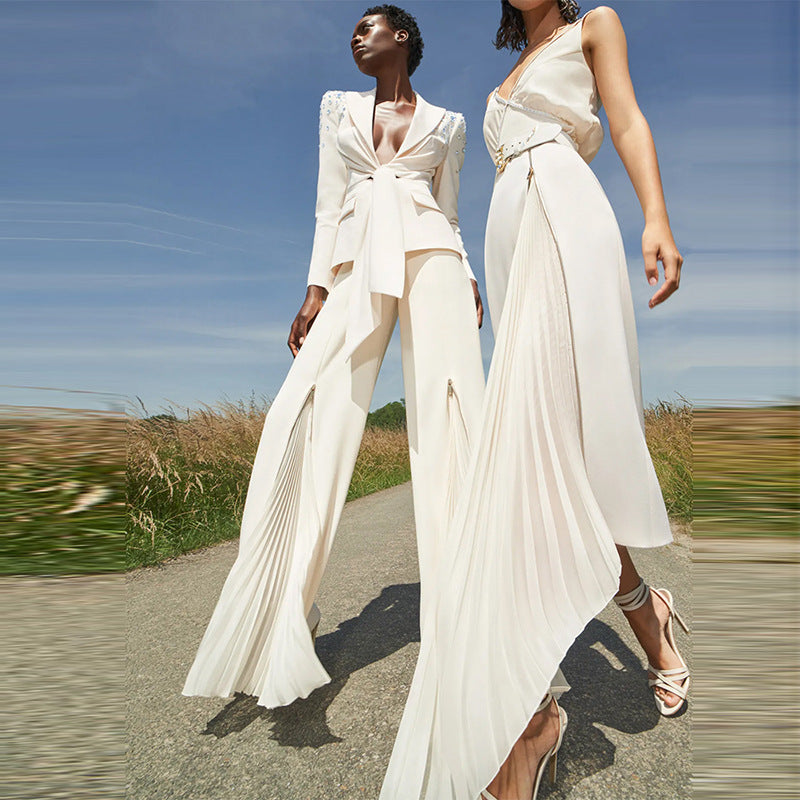 Socialite Plissee-Reißverschlusshose Schnürset Zweiteiliges Blazer-Anzugset