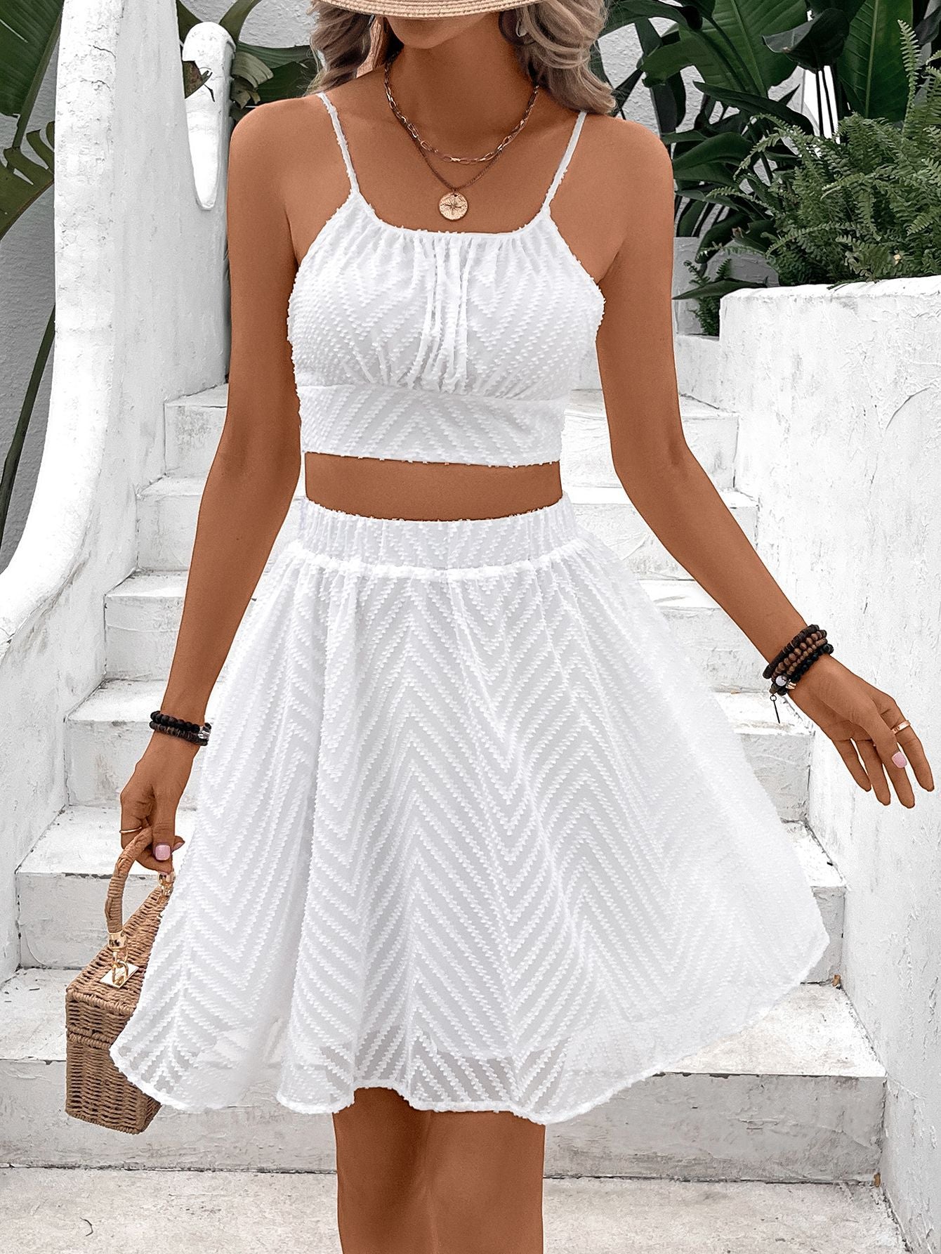 Einfarbiges rückenfreies Spaghettiträger-Oberteil mit hoher Taille und Netz-Midirock
