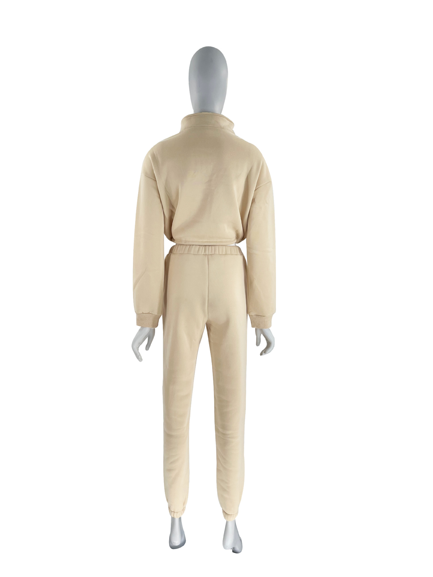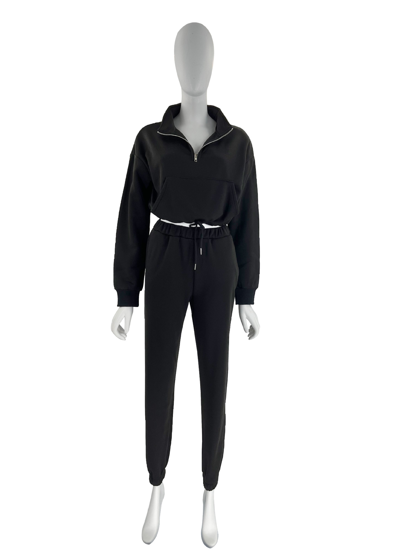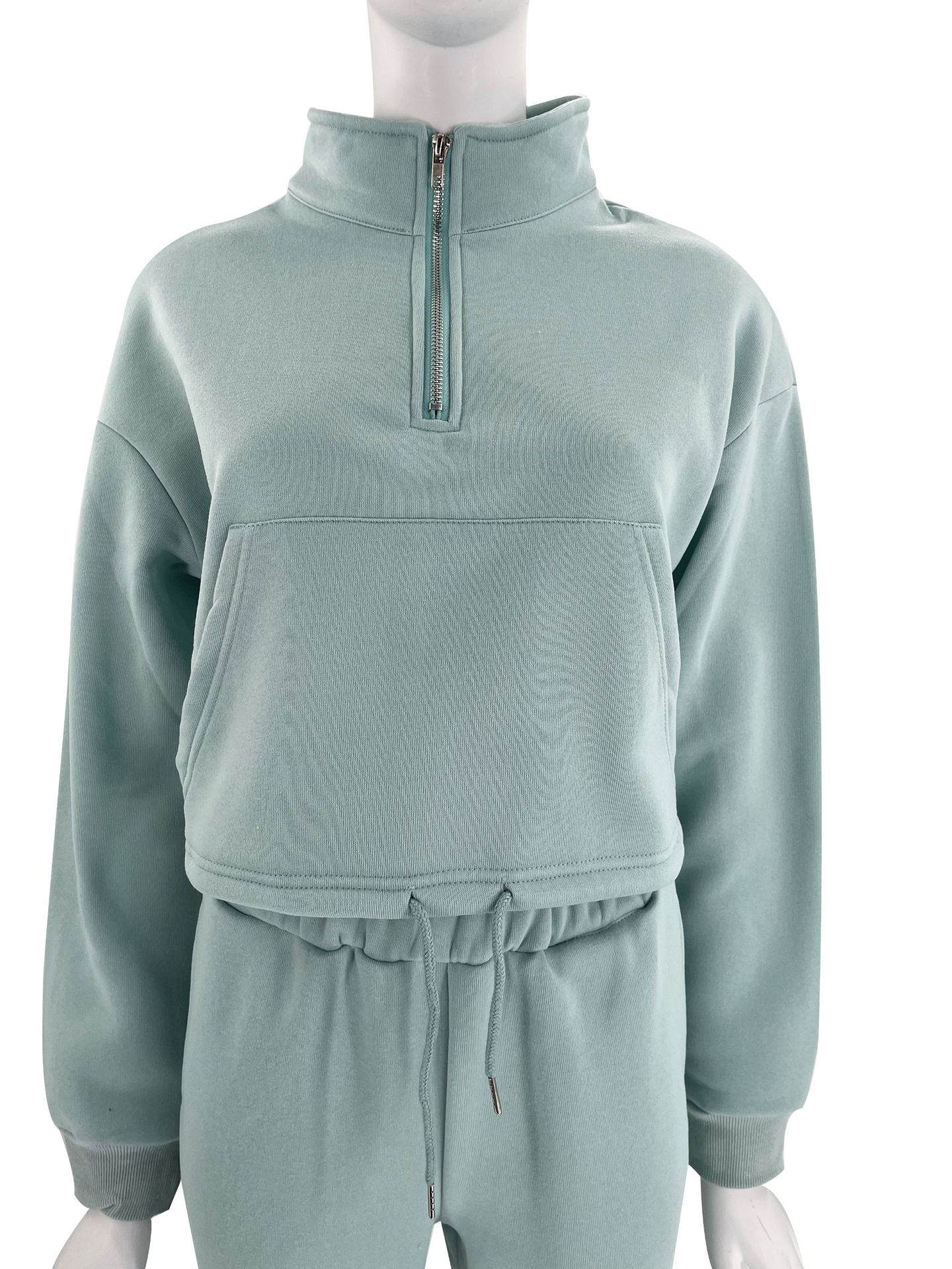 Einfarbiger StCollar-Reißverschluss-Kordelzug-kurzer gebürsteter Kapuzenpullover-lässiger Jogginghosen-Anzug
