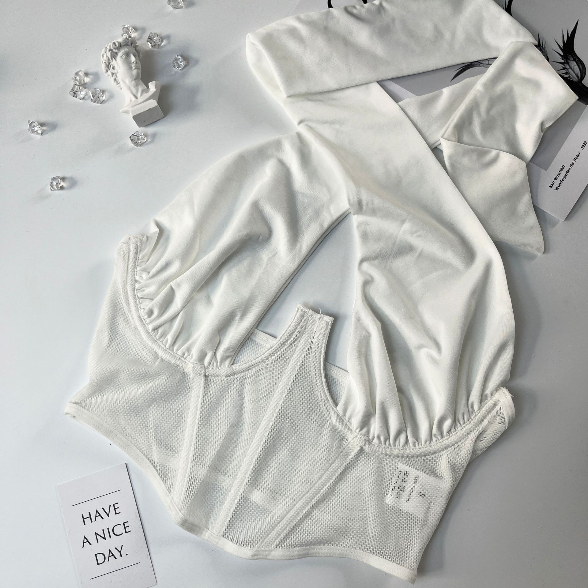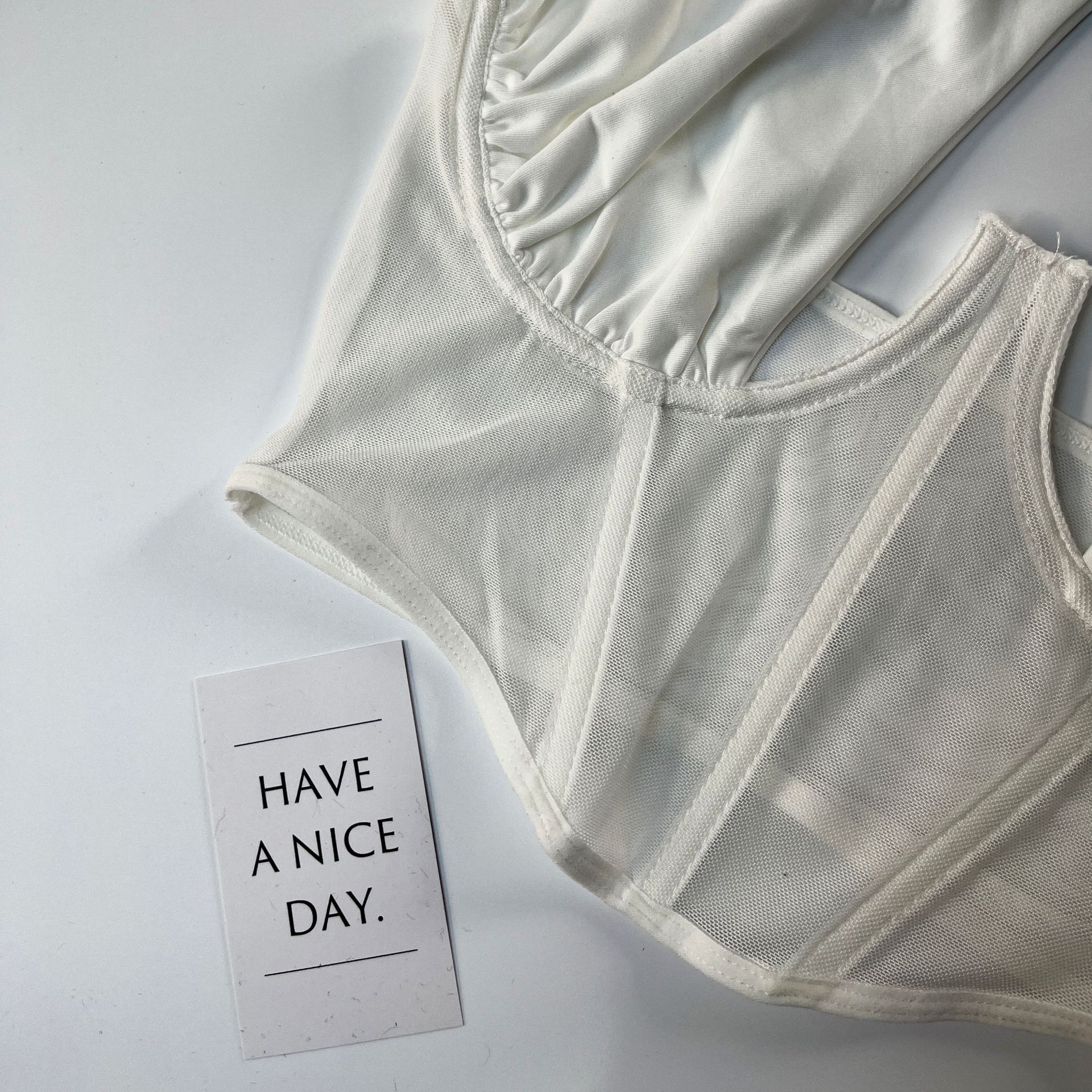 Korsett mit Neckholder und Stäbchen, Netzstoff und Perspektiv-Kreuz