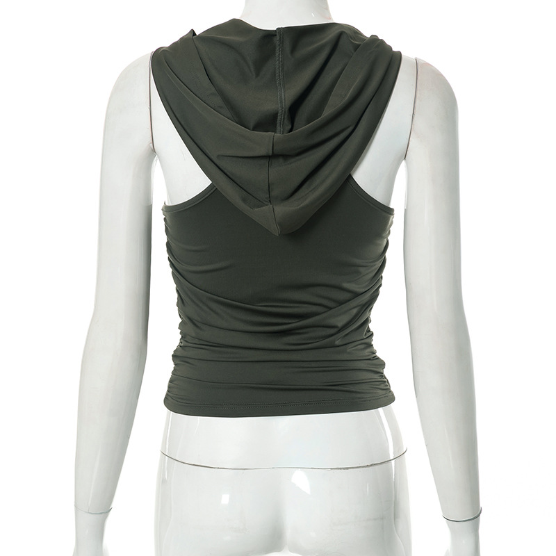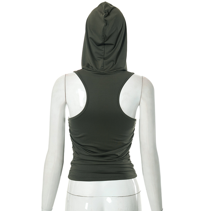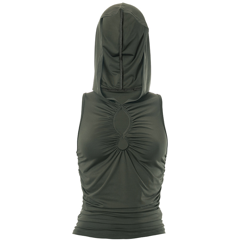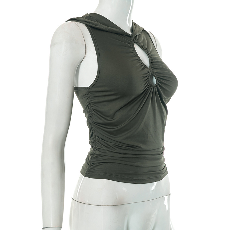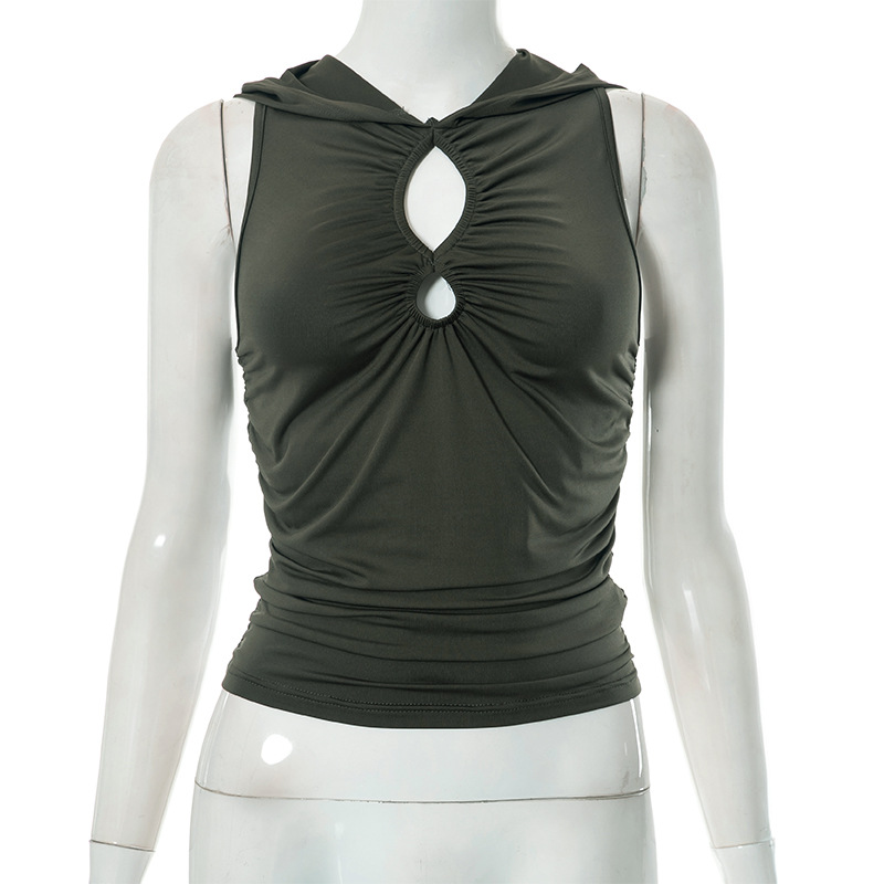 Trend Retro Hollow Out Cutout Kapuze Ärmelloses einfarbiges kurzes Oberteil