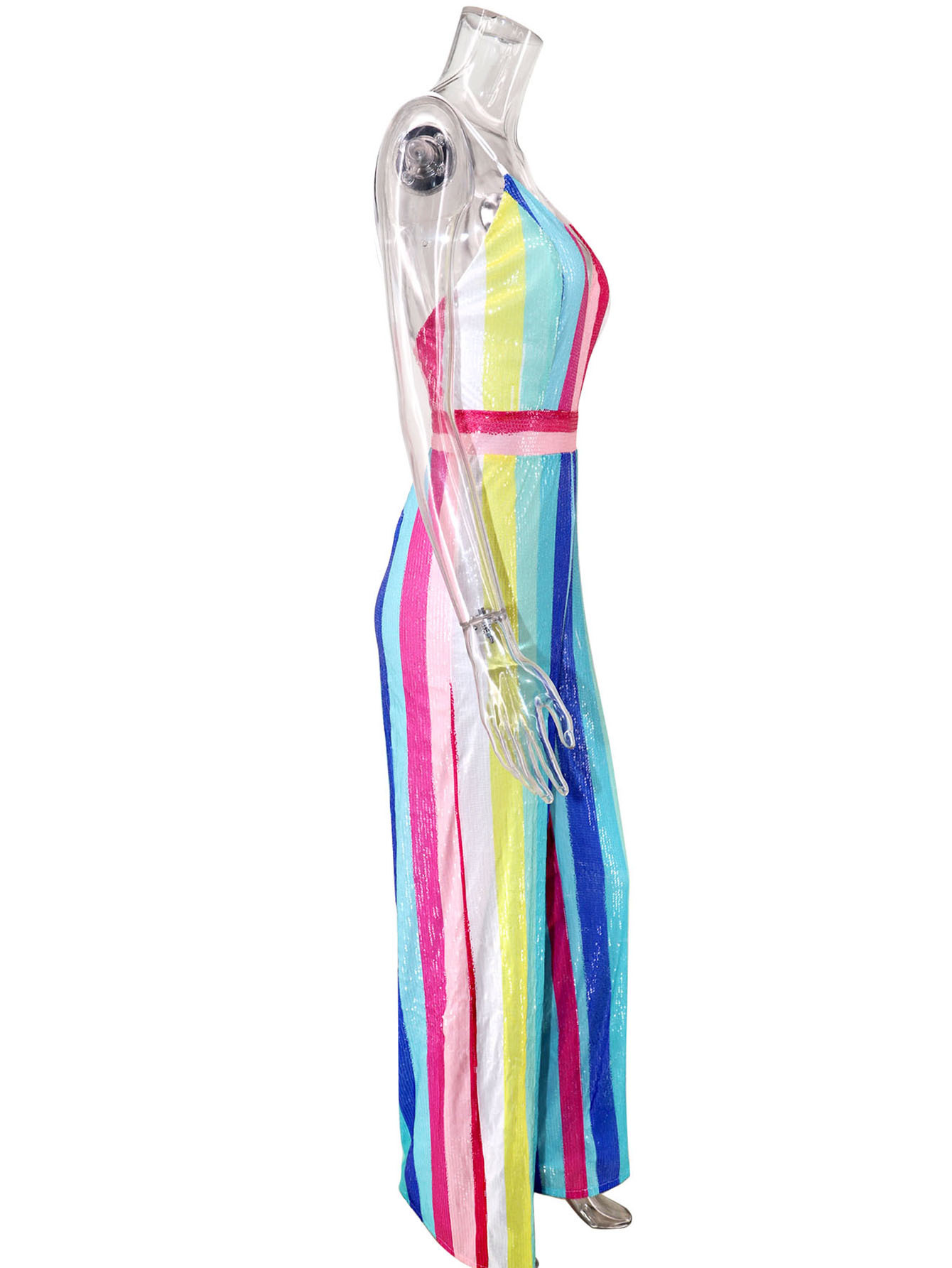 Hose Retro Hosenträger Streifen Pailletten Jumpsuit