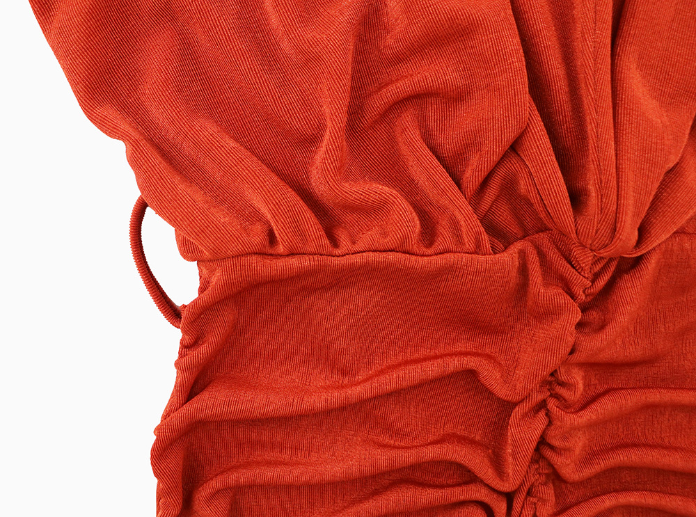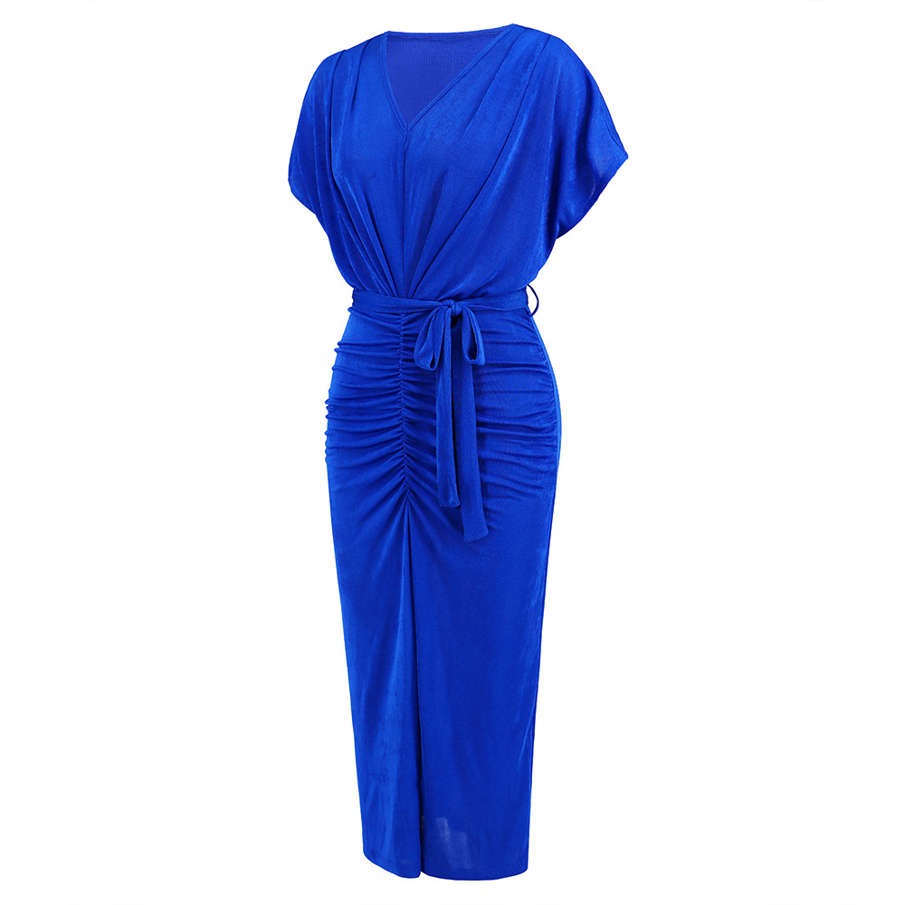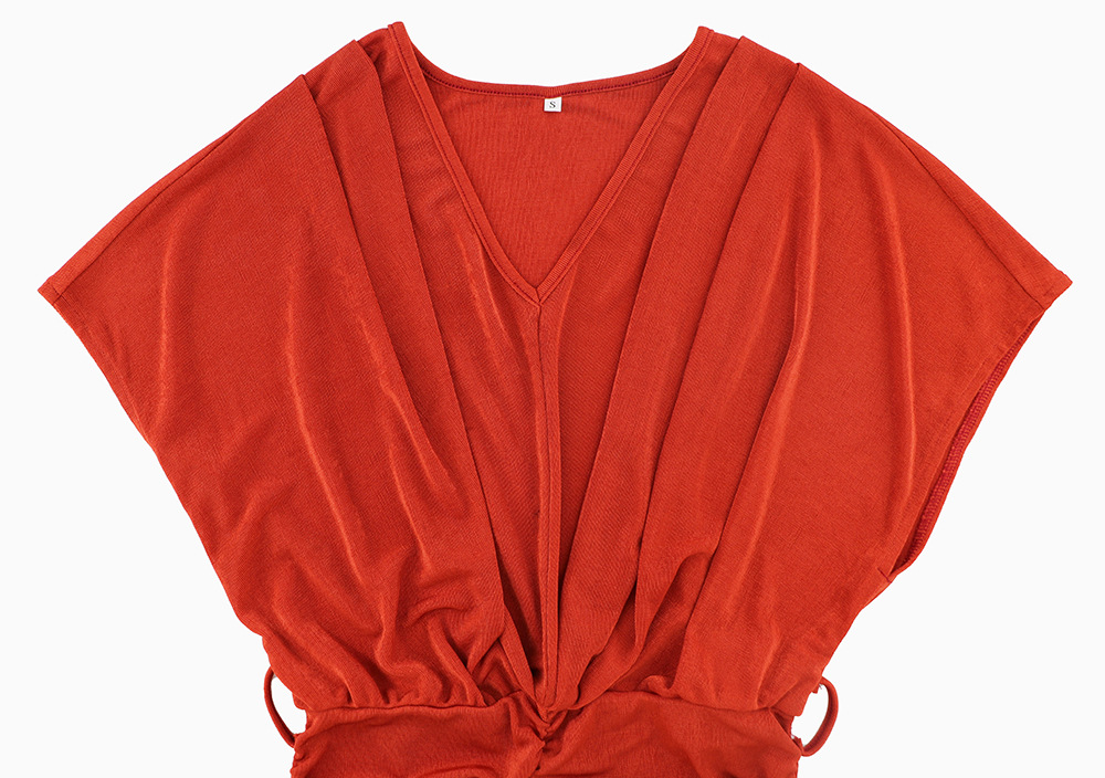 Kleid aus glänzendem, wackelndem Stoff mit V-Ausschnitt