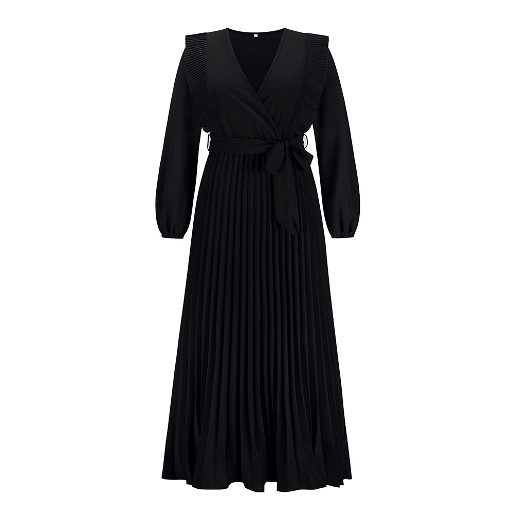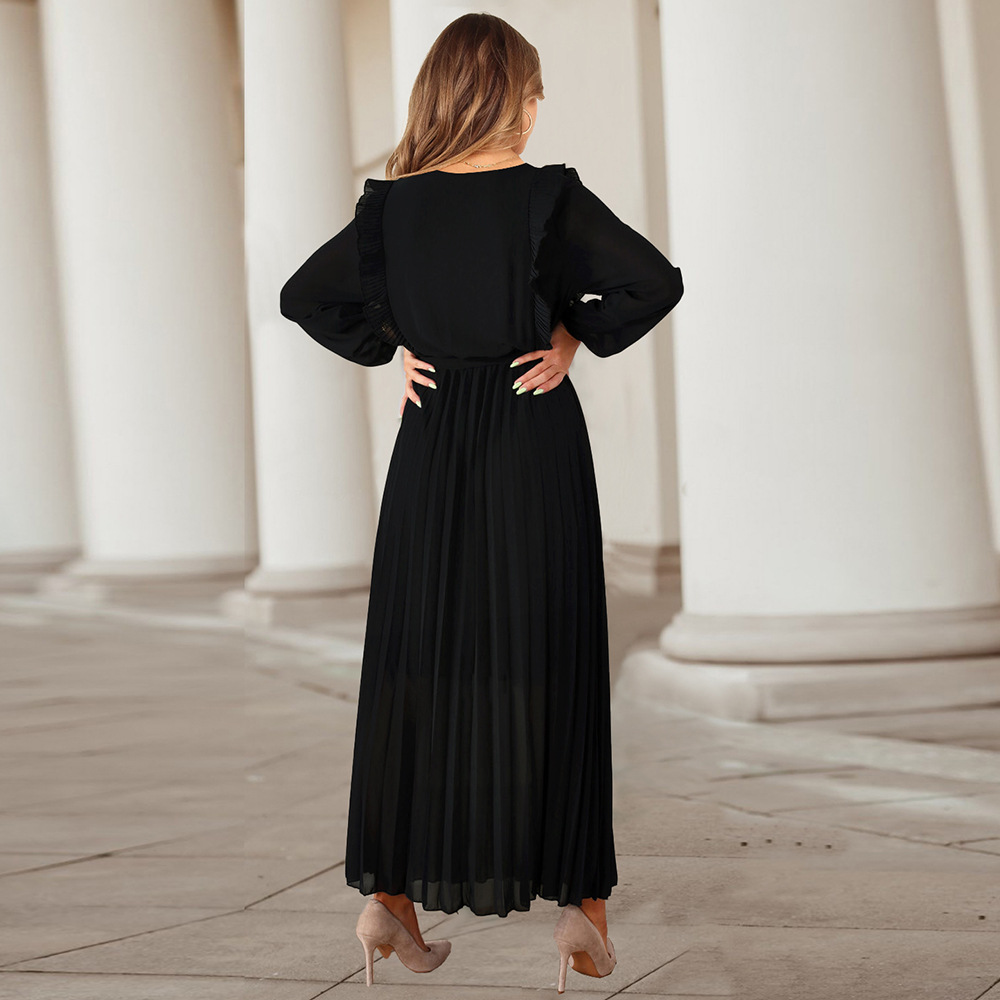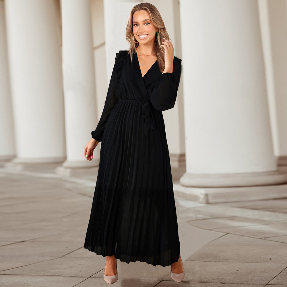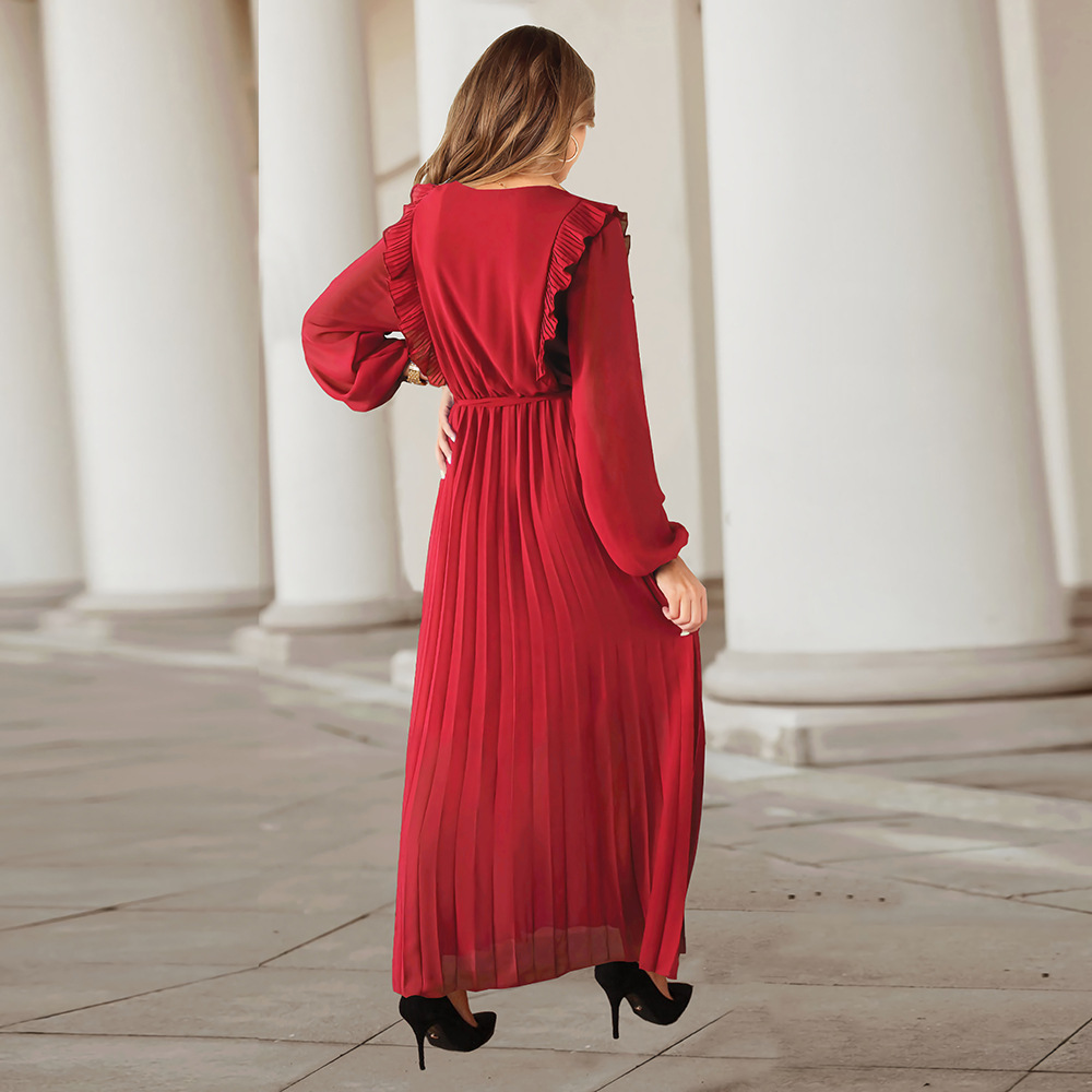 V-Ausschnitt Swing Plissee Kleid Maxikleid