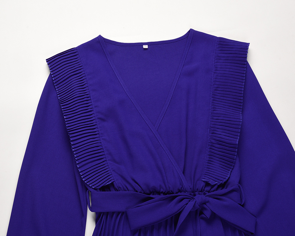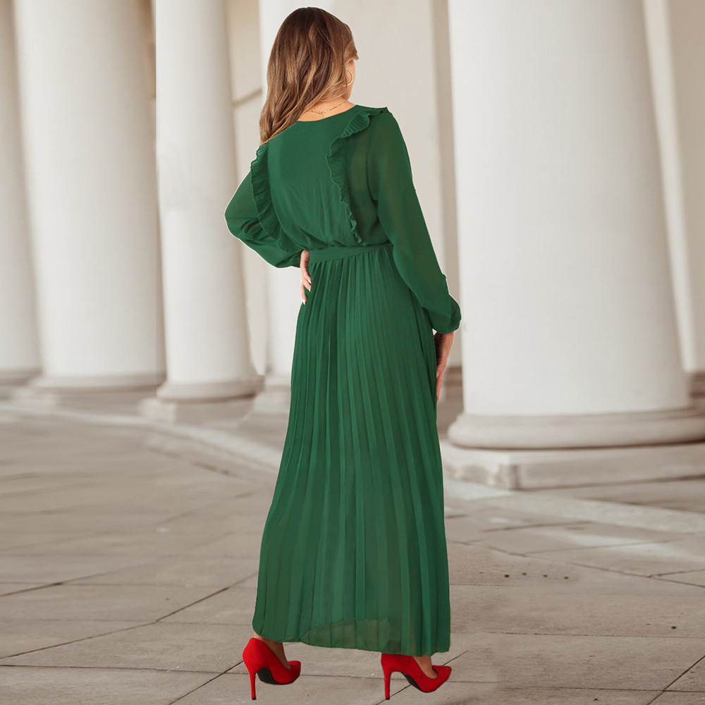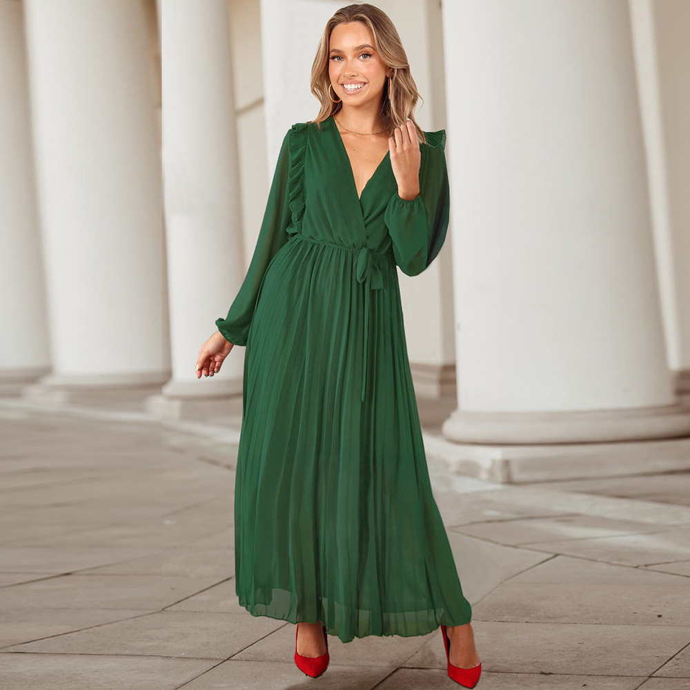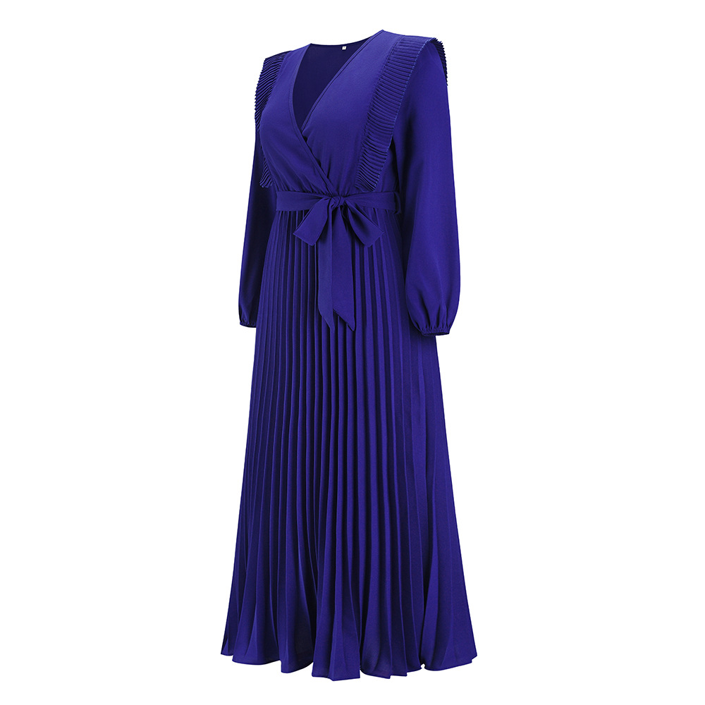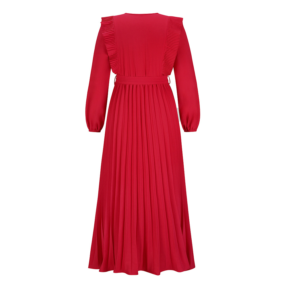 V-Ausschnitt Swing Plissee Kleid Maxikleid