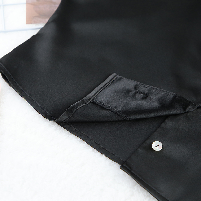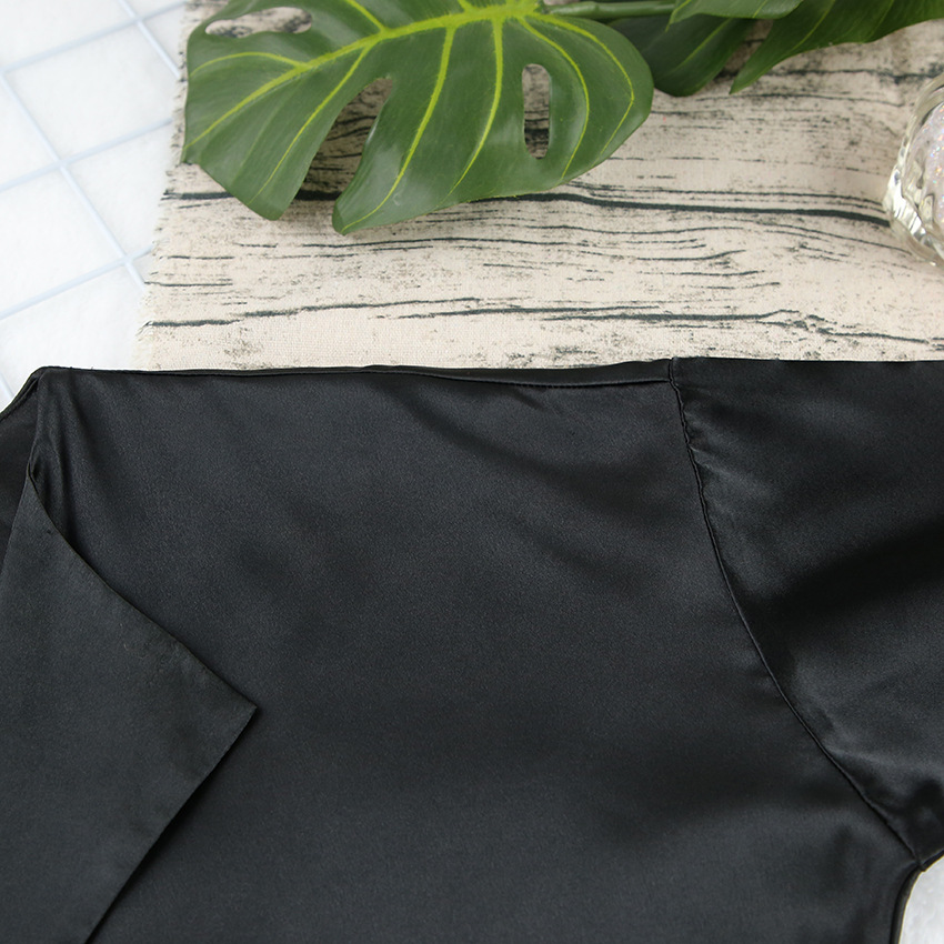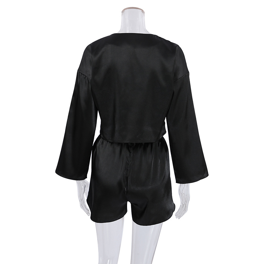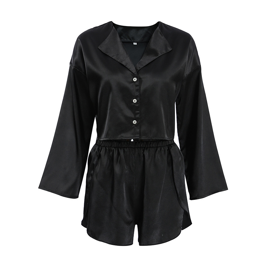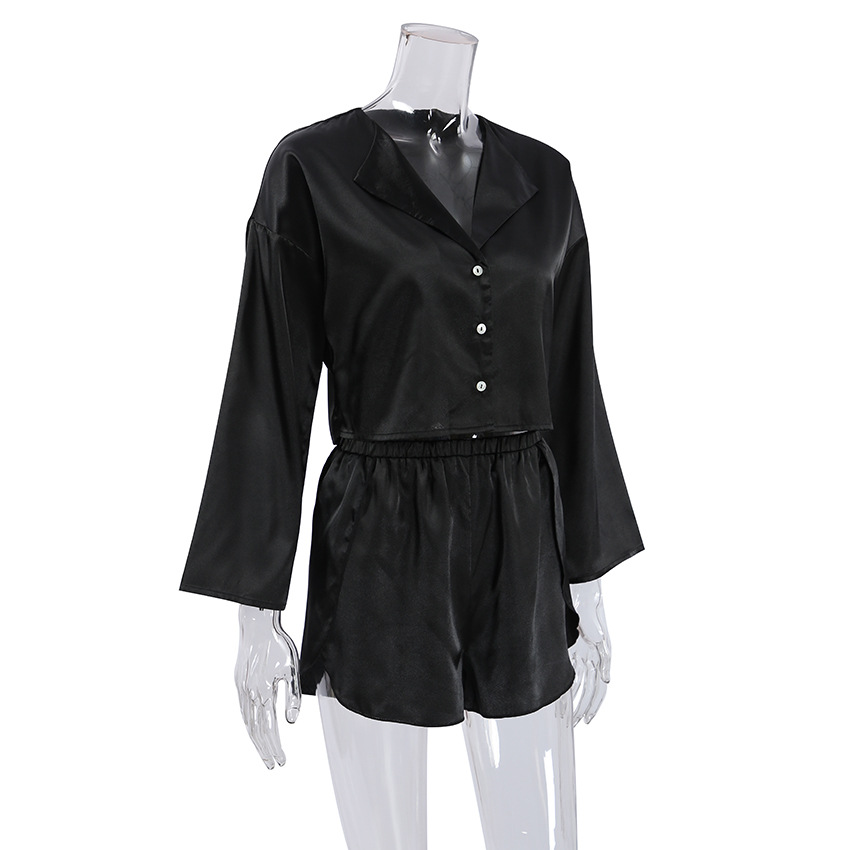Pyjama deux pièces confortable et respirant en soie artificielle, manches longues, short fendu, vêtements d'extérieur, vêtements d'intérieur