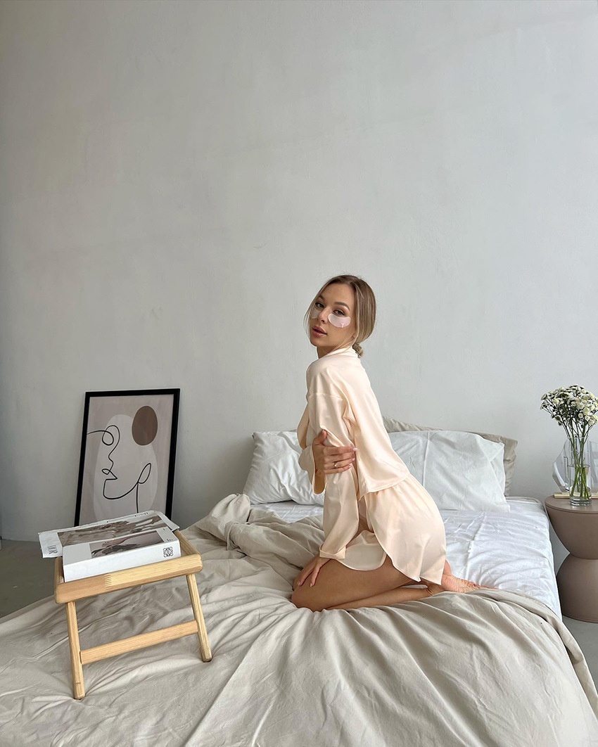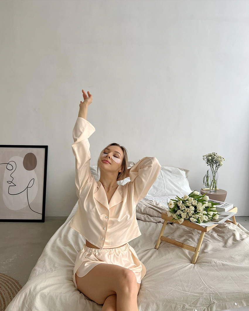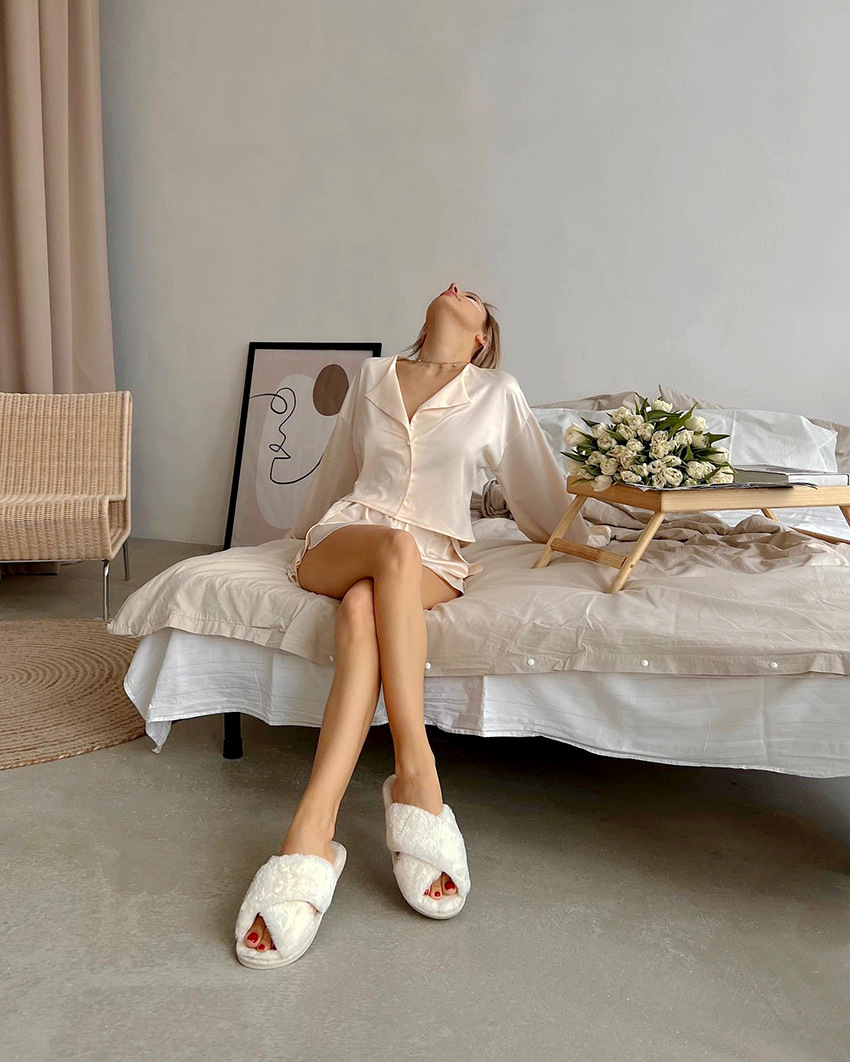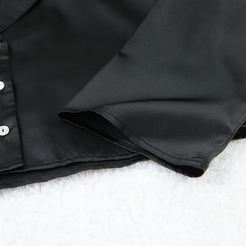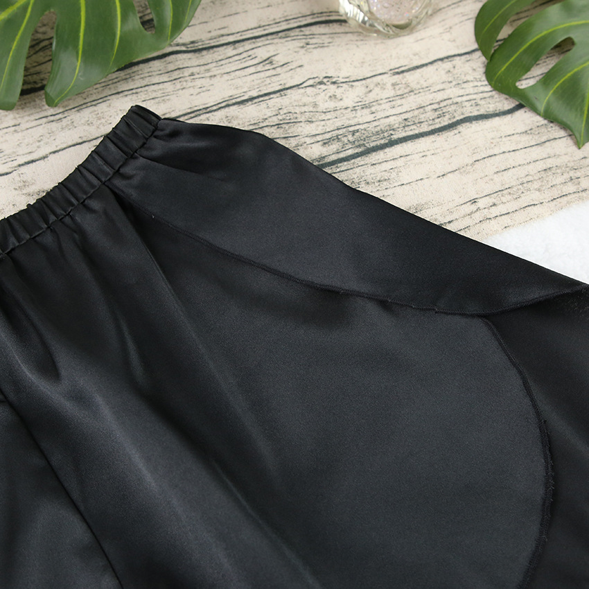 Pyjama deux pièces confortable et respirant en soie artificielle, manches longues, short fendu, vêtements d'extérieur, vêtements d'intérieur