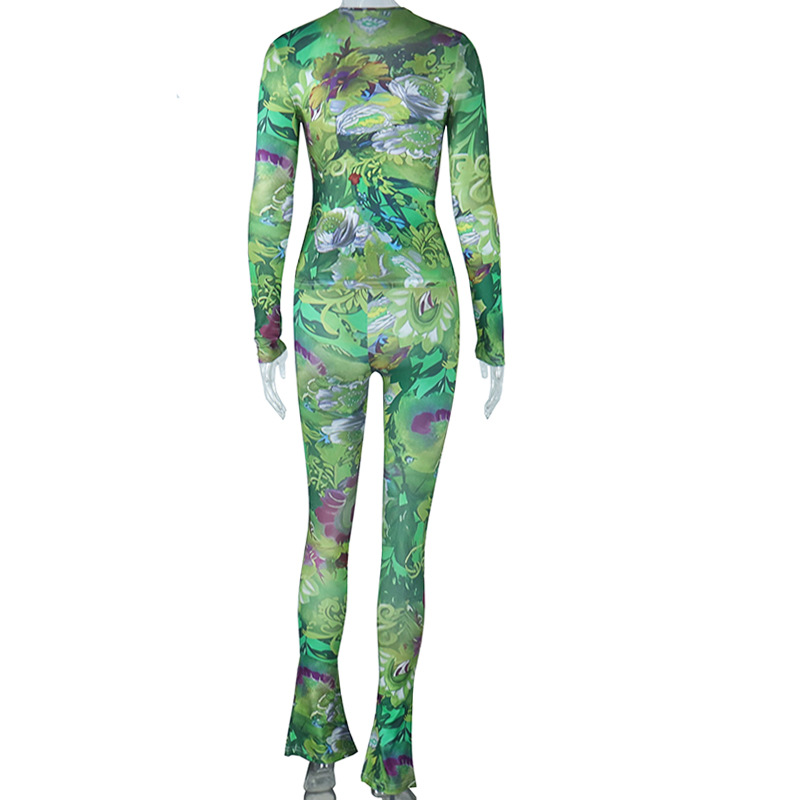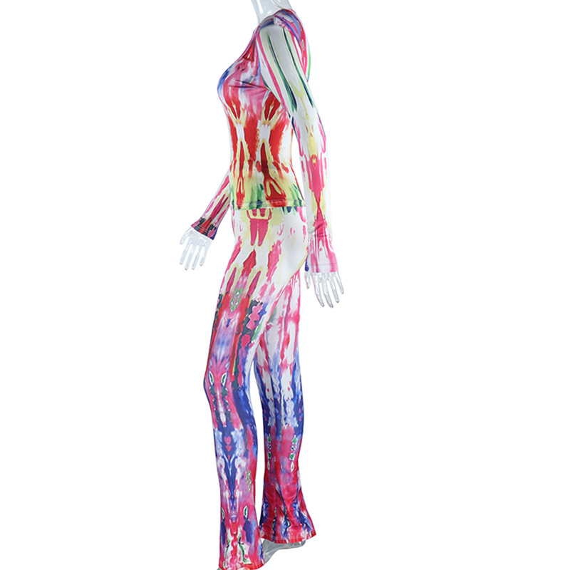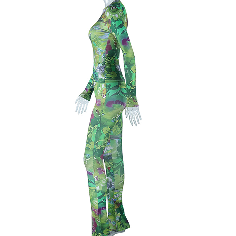 Ensemble deux pièces moulant imprimé numérique, haut court, col rond, taille haute, leggings rehaussant les hanches